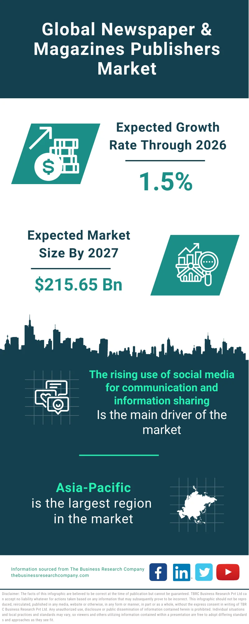 The newspaper and magazines publishers market is expected to grow to $215.65 billion in 2027 at a CAGR of 1.5%.”