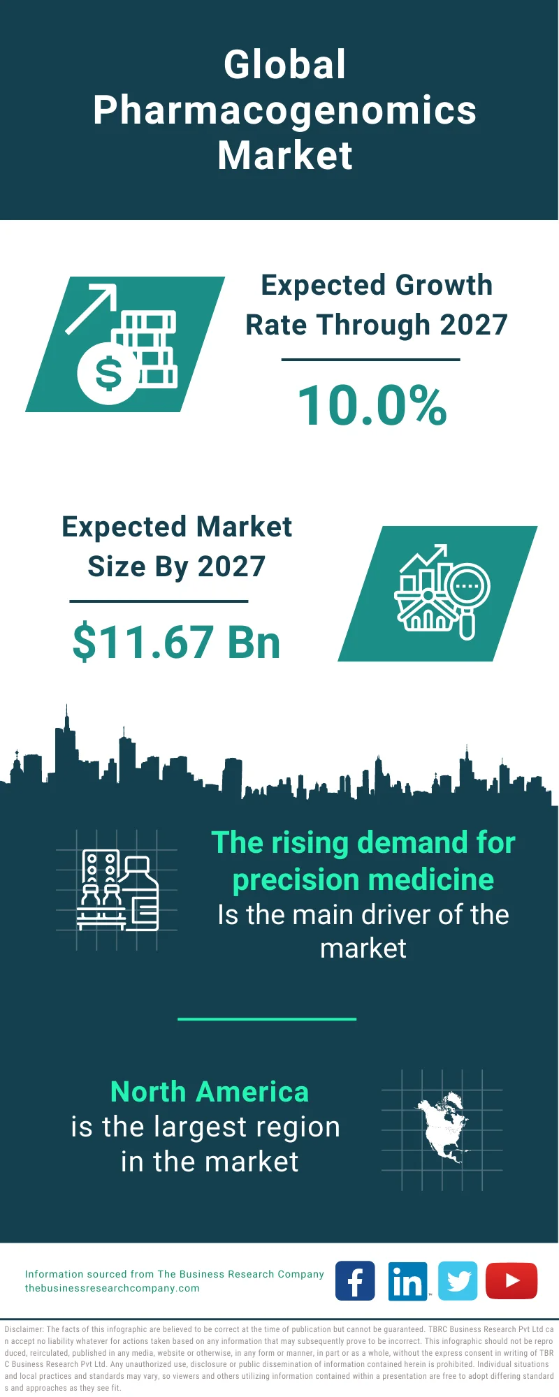 The Business Research Company’s “Pharmacogenomics Global Market Report 2023” is a comprehensive source of information that covers every facet of the market. As per TBRC’s market forecast, the pharmacogenomics market size is predicted to reach $11.67 billion in 2027 at a CAGR of 10.0%.