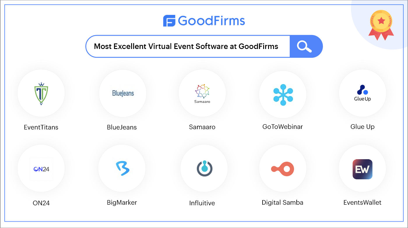 GoodFirms’ indexed this latest list of excellent virtual event software through a thorough analysis based on quality, reliability, and ability to cater to the needs of service seekers. This list was created based on several parameters, such as the background of each product, the company, years of experience in the domain areas, online market penetration, client feedback, and much more. Only those companies that attained the maximum score made it to the list.