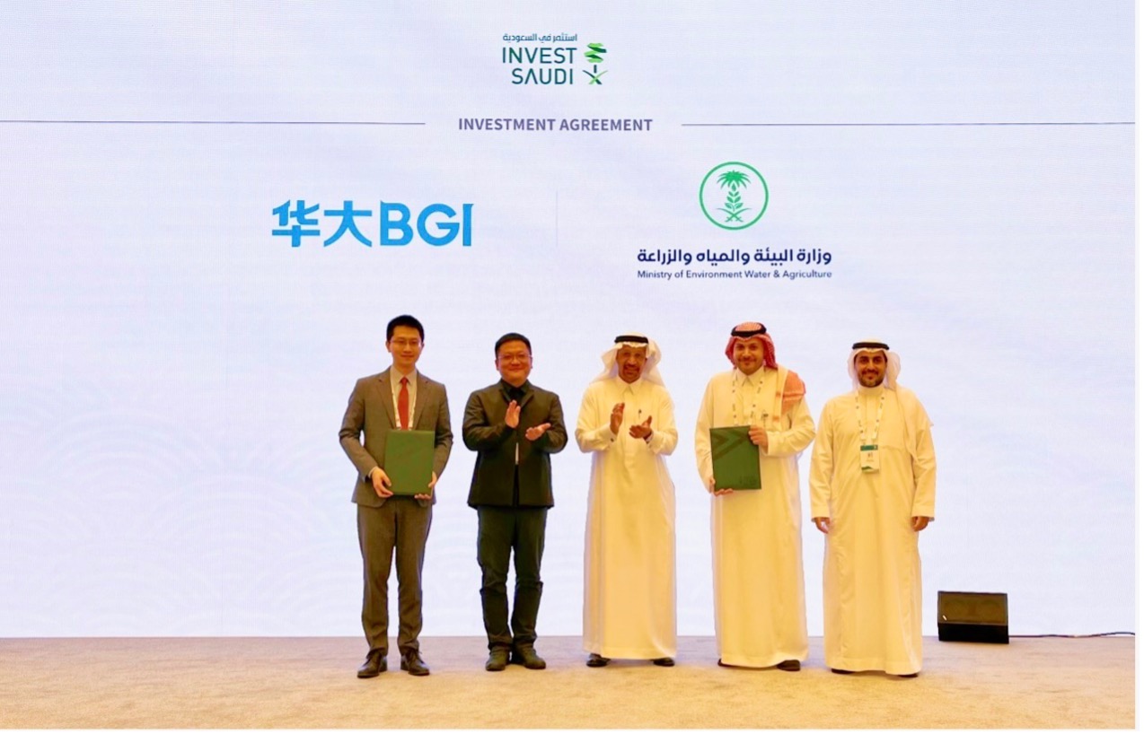 En el marco de la conferencia, y con la presencia del Excmo. Khalid Al-Falih, Ministro de Inversiones, el Excmo. Ing. Mansour Bin Hilal Al Mushaiti, Viceministro de Medio Ambiente, Agua y Agricultura, y el Dr. Yin como testigos, el Sr. Ma Zhe, Gerente General Regional de Asia Occidental del Grupo BGI, ha firmado un acuerdo de cooperación con el Ministerio de Medio Ambiente, Agua y Agricultura (MEWA). Dicho acuerdo se enfoca en la preservación de los recursos biogenéticos, la modernización de la agricultura y la gestión ambiental, brindando un total respaldo a la Iniciativa Verde de la Visión 2030 de Arabia Saudita.