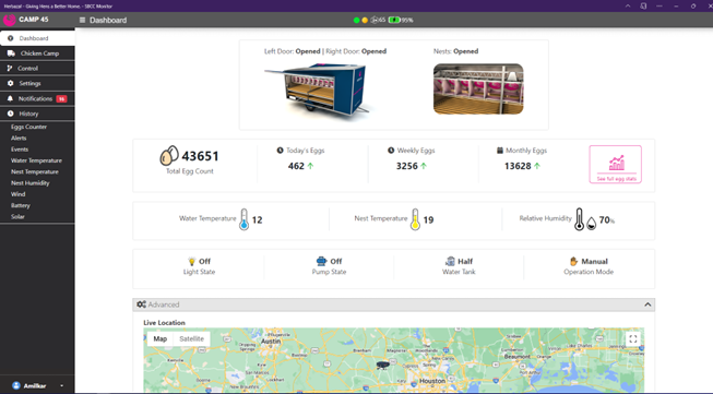Chicken Camp, a tech startup by Amer Technologies, is an innovative chicken coop manufacturing approach that promises to make waves in the multibillion-dollar egg industry market. Utilizing sophisticated AI technology, Chicken Camp collects real-time field site information and transmits it to cloud-based servers for analysis and optimization of AI-driven automation features using big data. This around-the-clock connectivity enables farmers to make well-informed decisions and substantially reduces labor costs and enables large-scale business expansion, allowing a single person to oversee up to twenty Chicken Camps in one day. Ultimately, this results in a production capacity of 8,000 eggs per day or a remarkable 145 tonnes annually.