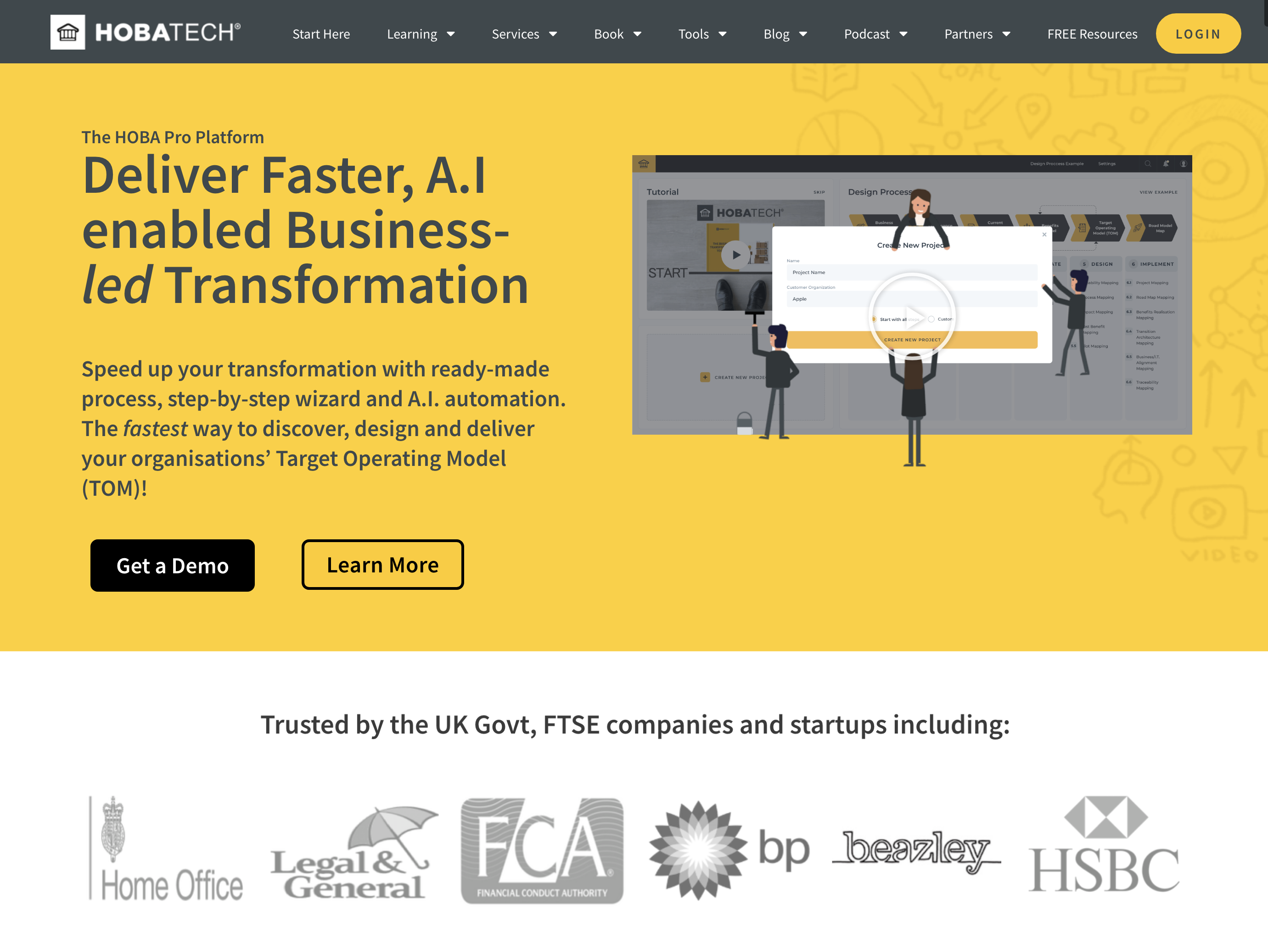 LONDON, ENGLAND, UNITED KINGDOM, November 10, 2023 /EINPresswire.com/ — HOBA Tech, a global leader in business transformation solutions, is thrilled to announce the launch of HOBA Pro®, a revolutionary a.i business transformation platform. This new product is built on the backbone of the widely-acknowledged HOBA® (House of Business Architecture®) framework, a system trusted by FTSE-100 companies, startups, and even the UK government for setting up and turning around their business transformation.