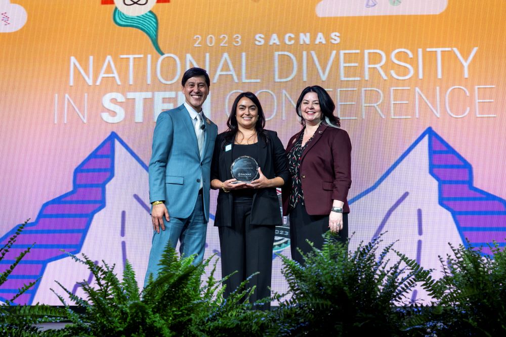 SACNAS Executive Director Juan Amador, FASAE, CAE, said these awards change lives. “When we try to quantify our impact, we can’t fully capture the confidence that our attendees build from meeting with our industry-leading partners and sharing their research with colleagues in higher education and government,” he explained. “Through the awards ceremony, we celebrate and commend attendees’ incredible work in their chosen STEM fields.”