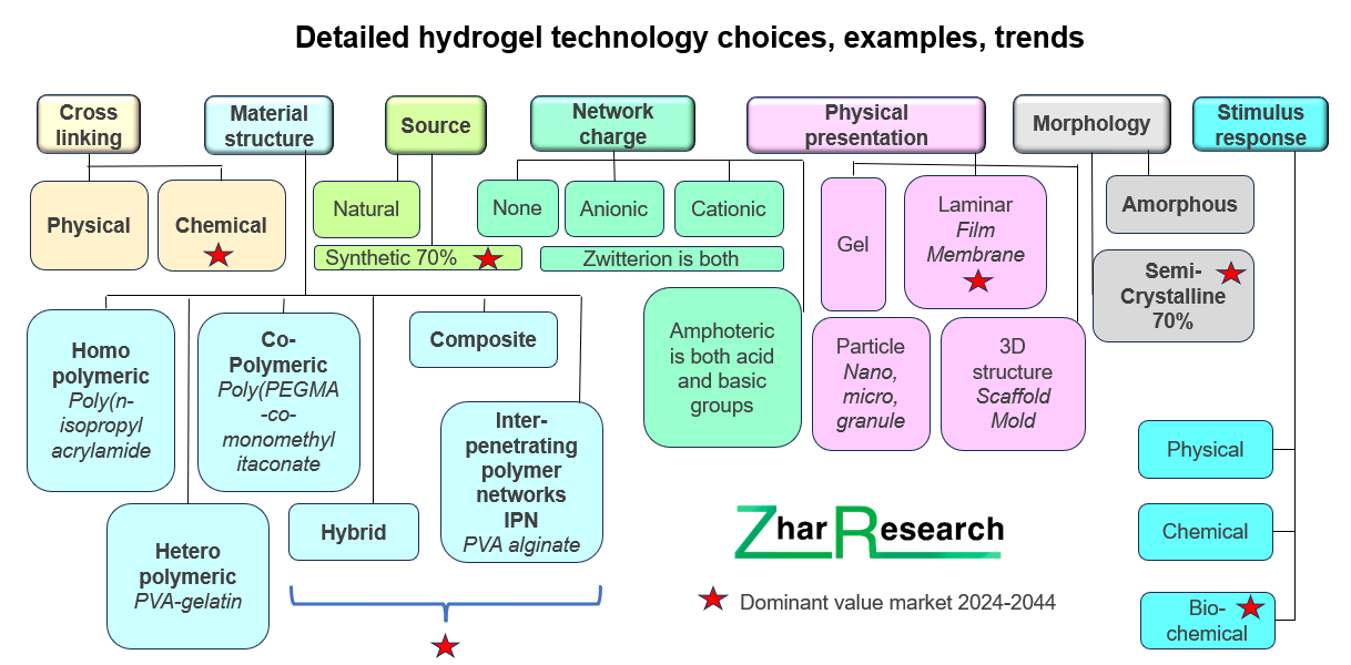 Detailed hydrogel technology sources, examples and trends. Source Zhar Research report, “Hydrogels: Future Technologies and Markets 2024-2044”.