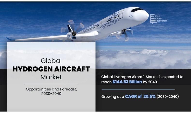 PORTLAND, OREGON, UNITED STATES, April 5, 2023 /EINPresswire.com/ — According to a recent report published by Allied Market Research, titled, “Hydrogen Aircraft Market by Passenger Capacity, Range, Application, Power Source, and Application: Global Opportunity Analysis and Industry Forecast, 2030–2040,” the global hydrogen aircraft market is projected to value at $23.71 billion in 2030, to reach $144.53 billion by 2040, registering a CAGR of 20.5% from 2030 to 2040.