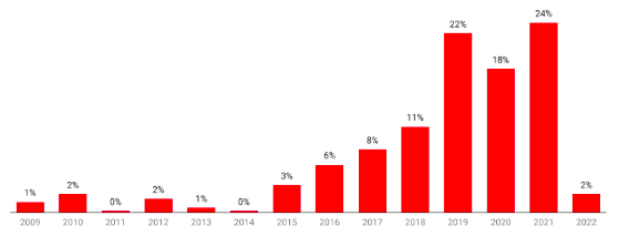 Those who entered in 2017-2018 and 2021 hold up to 90% and 60% of their assets in crypto, respectively. The researchers therefore expect that those who entered in 2022 will have a lower share of crypto in their portfolios.