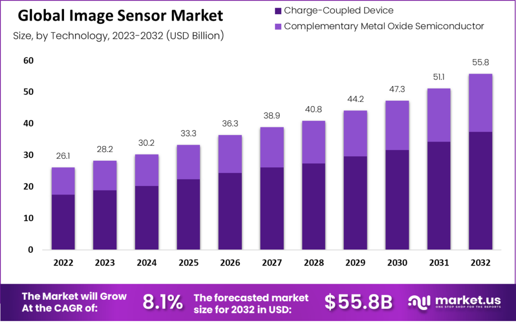 Image Sensor Market to reach $55.8 bn in 2032 | Driven by rising security and surveillance in public places, 2023-2033