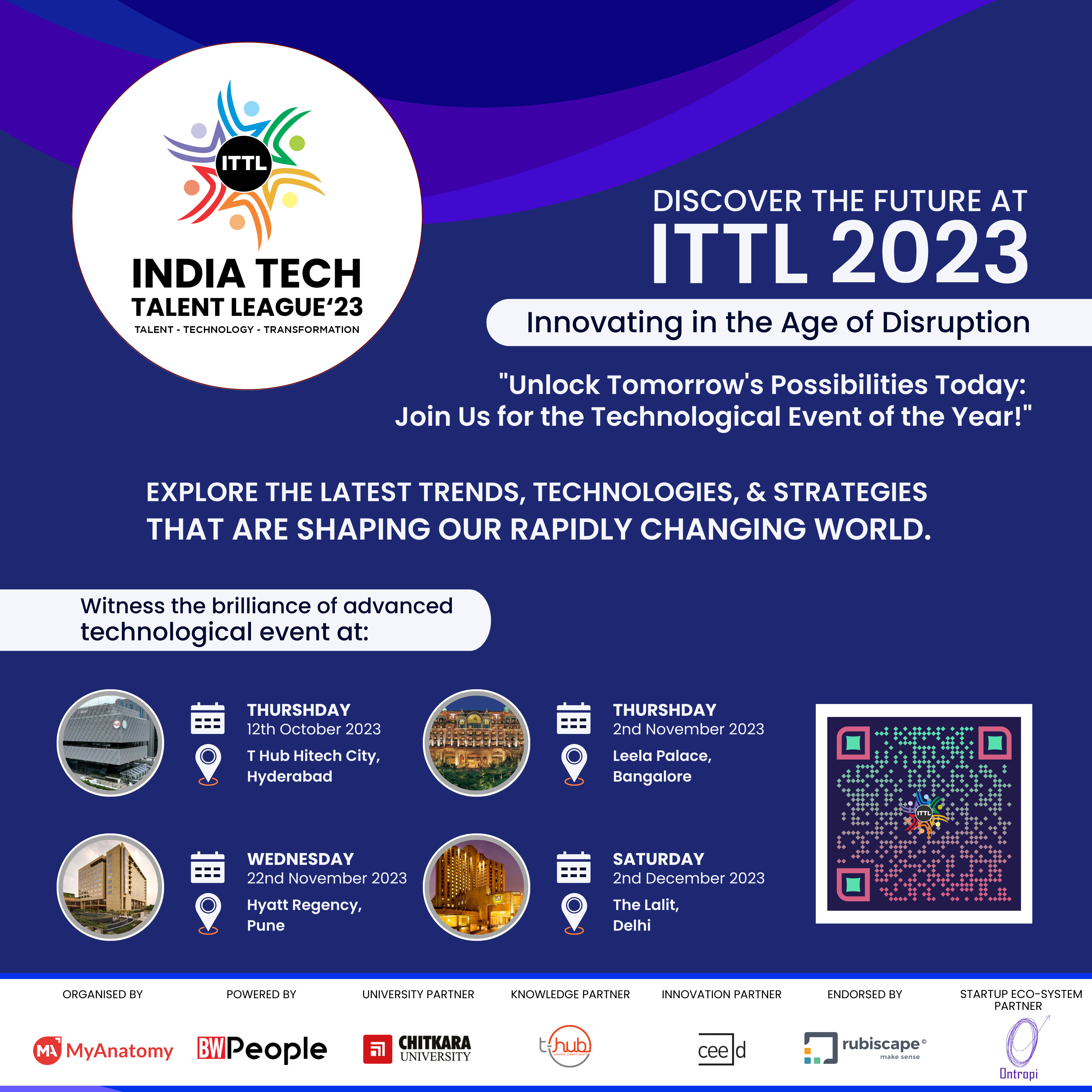 India is set to witness the brilliance of this event, with ITTL’23 Events dates in Hyderabad on October 12, 2023, Bangalore on November 2, 2023, Pune on November 22, 2023, and Delhi on December 02, 2023