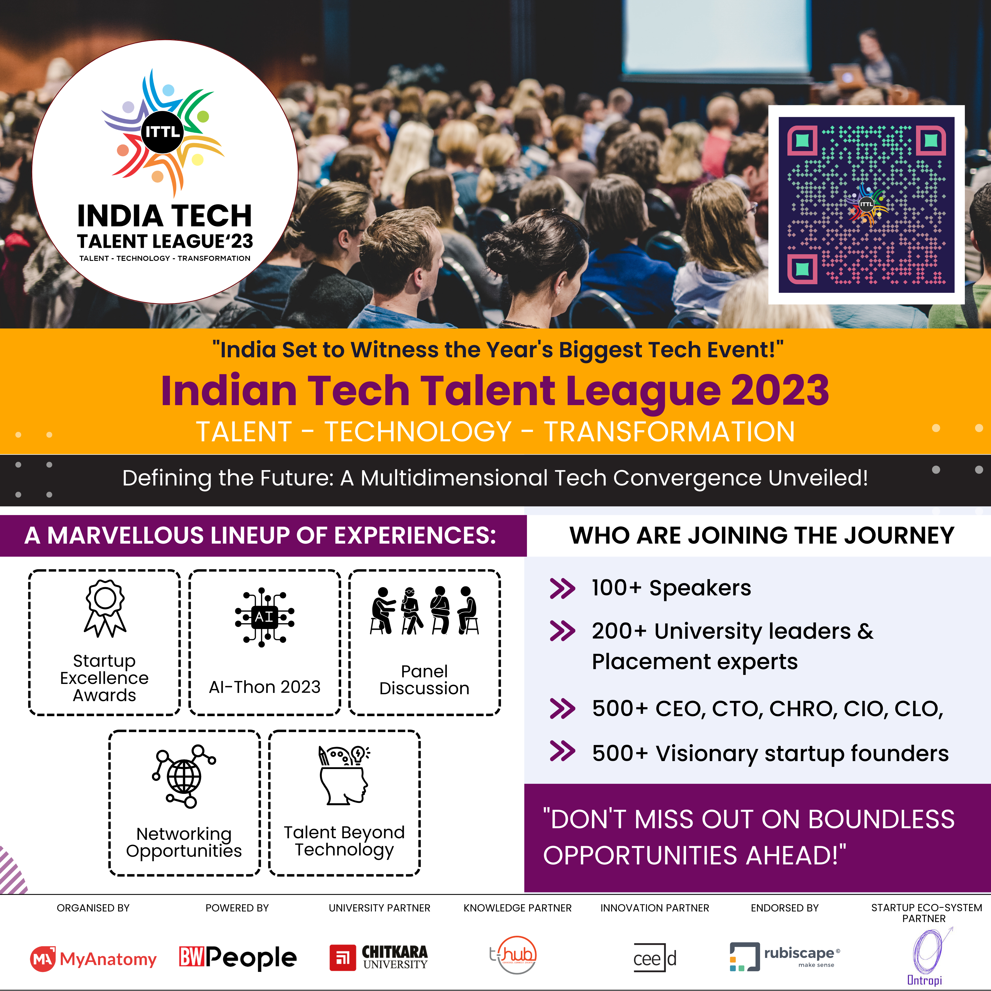 ?????????? ?????????????: ITTL’23 is set to be graced by over 100 ???????? and thought leaders, 200+ ?????????? ???????, and placement experts, as well as more than 500 ????, ????, ?????, ????, ????, ??? 500+ visionary startup founders