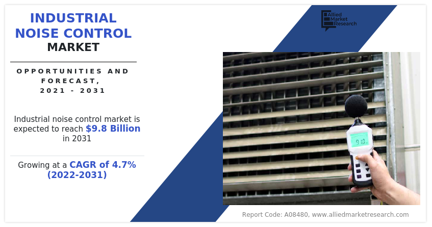 WILMINGTON, DELAWARE, January 29, 2024 /EINPresswire.com/ — The industrial noise control market size was valued at $6.1 billion in 2021, and is estimated to reach $9.8 billion by 2031, growing at a CAGR of 4.7% from 2022 to 2031.