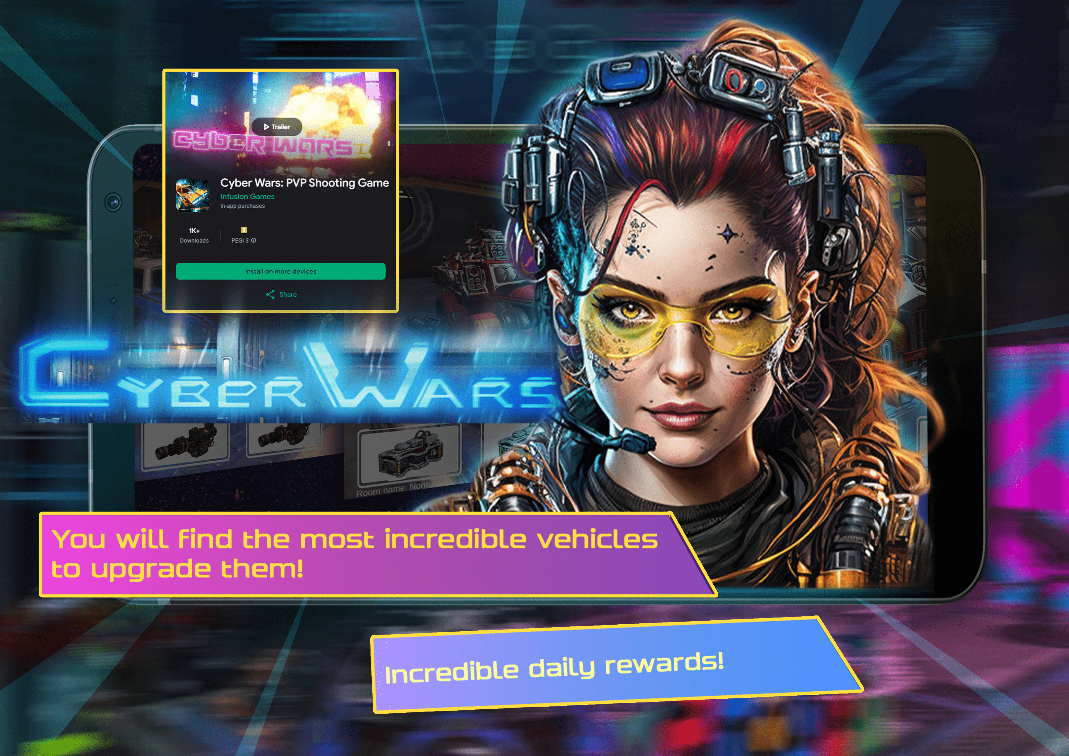 Cyber Wars is a vehicular shooter with multiplayer PvP and unlimited action taking place in a beautiful futuristic dystopia.