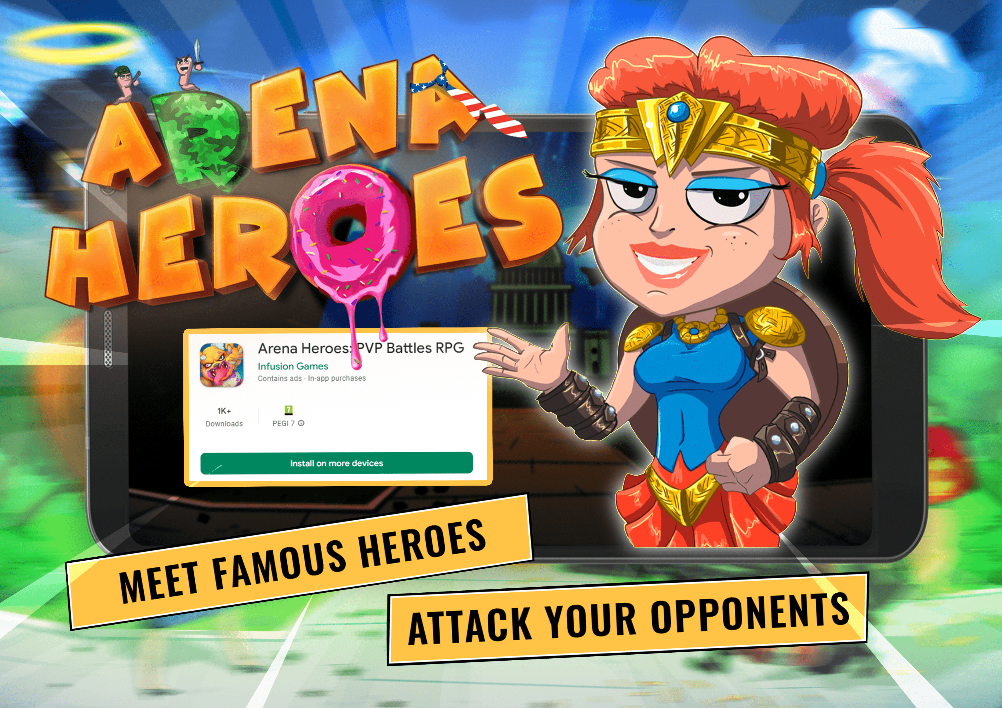 Arena Heroes presents an electrifying MMORPG battler, driven by dynamic 2D animation and an unapologetically audacious vibe. Gamers will not only select their fighter from a diverse array of celebrities, politicians, movie characters, and gaming icons but will also engage in fierce PvP arena battles that transcend ordinary gameplay. The journey is infused with an assortment of equipment, artifacts, distinct abilities, and compelling factions. Arena Heroes promises an unprecedented clash of cultures as heroes and villains from various backgrounds lock horns in epic confrontations.