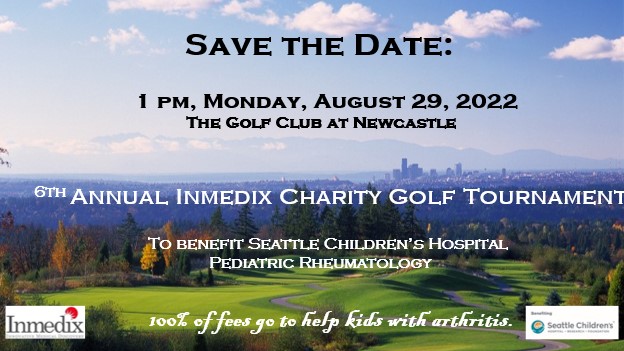 NORMANDY PARK, WA, USA, September 16, 2022 /EINPresswire.com/ — Seattle-based biotech/medtech Inmedix, Inc. continued its effort to support kids with arthritis at its 6th annual Inmedix charity golf tournament at the Golf Club at Newcastle on Monday, August 29, 2022. Today, it announced a final tally of $19,405 raised. After these six events, the company has provided nearly $90,000 to support research and other pressing needs at the Pediatric Rheumatology division of the University of Washington at Seattle Children’s Hospital.