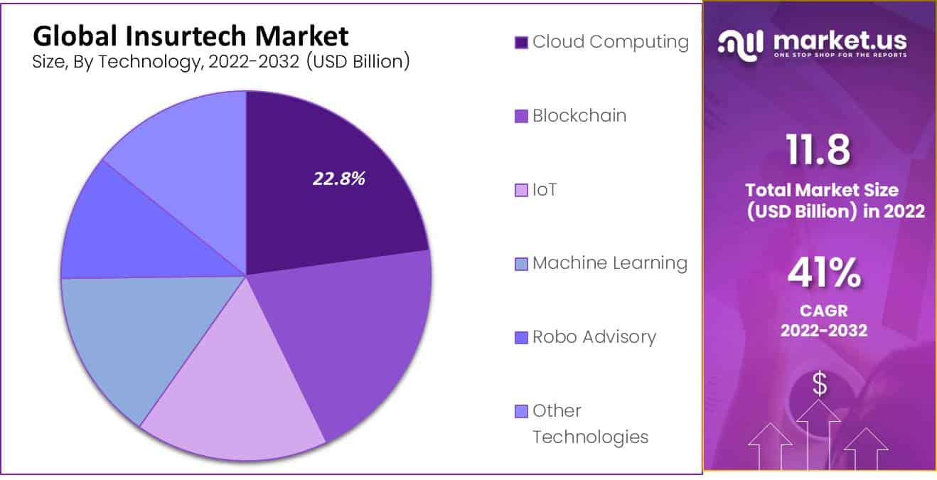 Cloud computing dominated the insurtech market in 2022, accounting for more than 22.8% of total revenue. Its flexibility, ease of deployment, and scalability have transformed the insurance industry by enabling better management of large volumes of data and facilitating Bring Your Own Device policies. Partnerships between cloud service providers and insurers are helping to improve insurtech products and drive market growth.