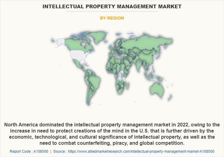 By region, North America held the major share in 2022, garnering more than one-third of the global intellectual property management market revenue. Due to the increase in the need to protect creations of the mind in the U.S., which is further driven by the economic, technological, and cultural significance of intellectual property, as well as the need to combat counterfeiting, piracy, and global competition. On the other hand, the Asia-Pacific region is projected to retain its dominance in terms of revenue by 2032. The same region would also portray the fastest CAGR of 19.3% during the forecast period. Owing to significant technological advancements in areas such as electronics, telecommunications, automotive industries, and consumer goods. As a result, these advancements have led to a surge in intellectual property creation and the need for effective management and protection.