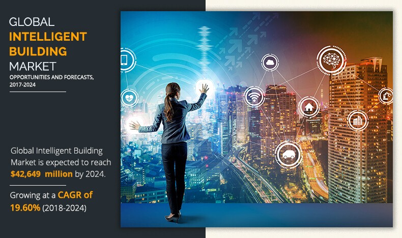 The global intelligent building market size was pegged at $12.37 billion in 2017, and is estimated to hit $42.64 billion by 2024, registering a CAGR of 19.6% from 2018 to 2024.