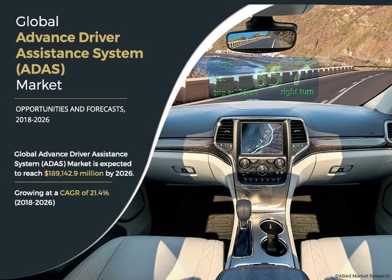 PORTLAND, OREGON, UNITED STATES, July 7, 2023/EINPresswire.com/ — Allied Market Research published a report, titled, “Advanced Driver Assistance Systems (ADAS) Market by System Type (Tire Pressure Monitoring System (TPMS), Drowsiness Monitor System, Intelligent Parking Assist System (IPAS), Adaptive Cruise Control System, Blind Spot Object Detection System, Lane Departure Warning System, Adaptive Front-lighting System, and Others), Sensor Type (Image Sensor, Lidar Sensor, Ultrasonic Sensor, Infrared (IR) Sensor, Radar Sensor, and Laser), and Vehicle Type (Passenger Car, Light Commercial Vehicle, Buses, and Trucks): Global Opportunity Analysis and Industry Forecast, 2019–2026.” According to the report, the global advanced driver assistance systems market size was valued at $39.63 billion in 2018 and is estimated to reach $189.14 billion by 2026, registering a CAGR of 21.4% from 2019 to 2026.