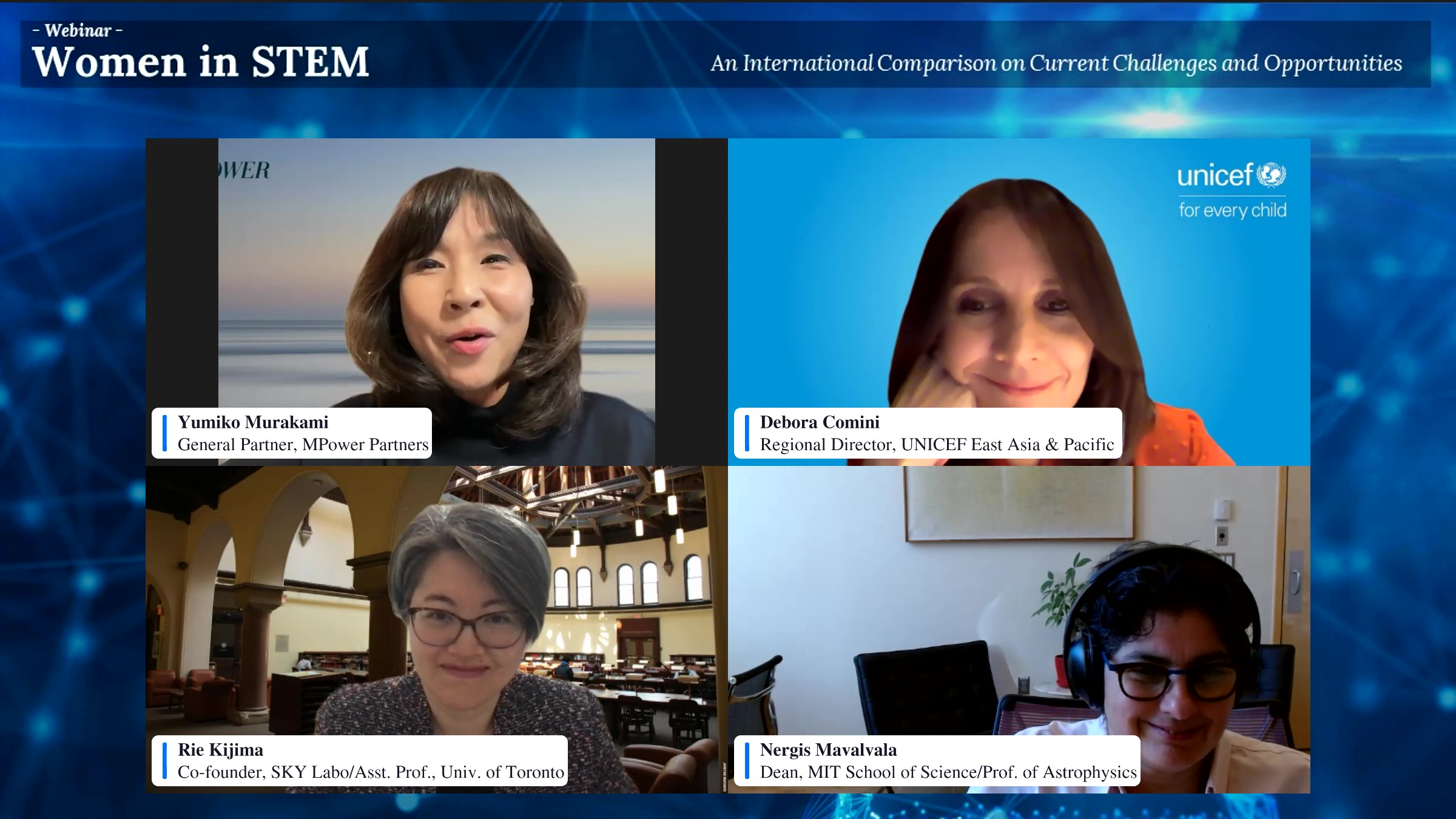 Ms. Yumiko Murakami, General Partner at MPower Partners, moderated this webinar and welcomed international experts in STEM as follows: