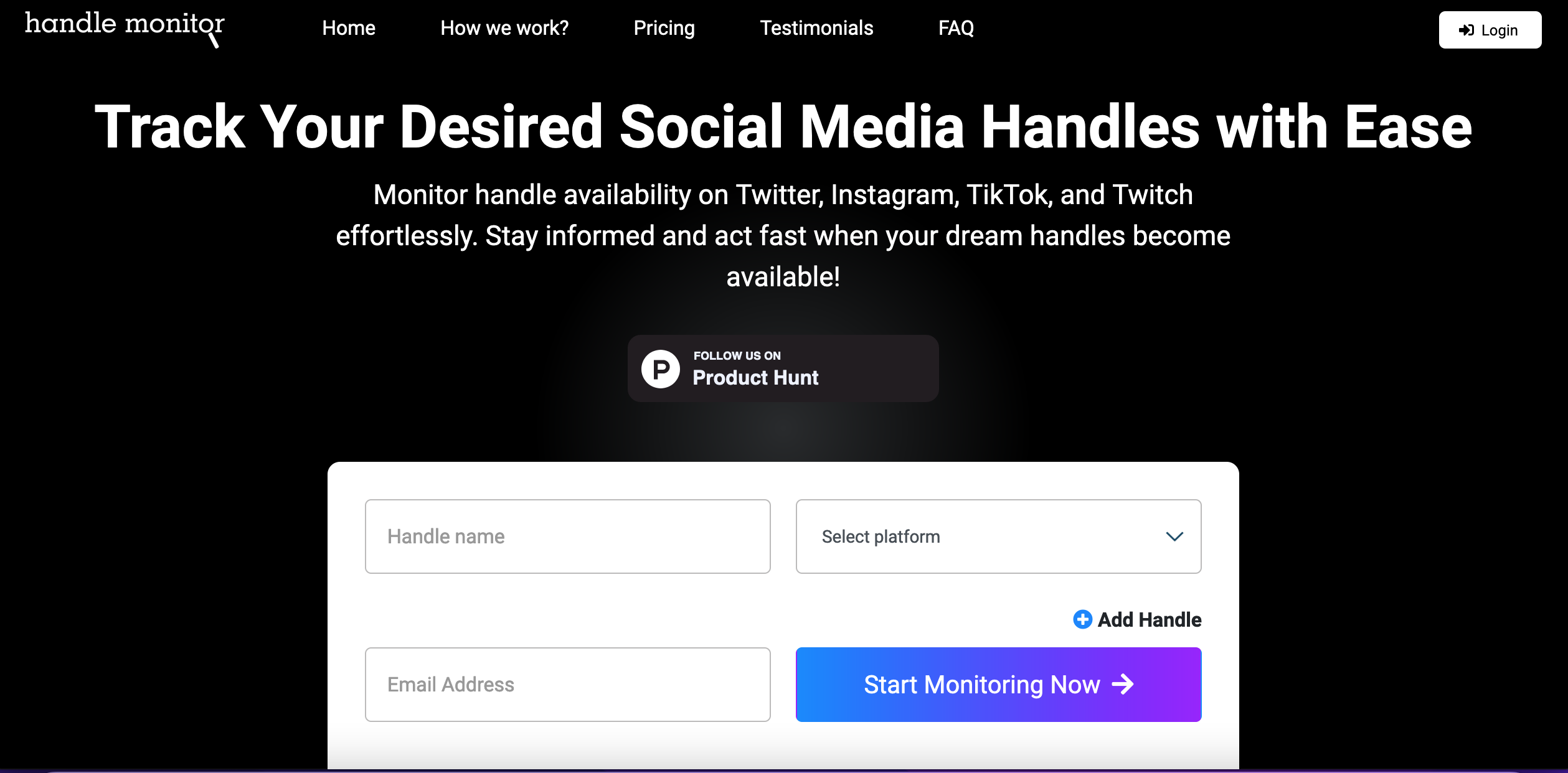 Handle Monitor is a one-stop solution for acquiring the ideal social media handle on Twitter, Instagram, TikTok, and Twitch. The company’s goal is to offer a user-friendly and efficient service that keeps users informed about the availability of their desired social media handles.
