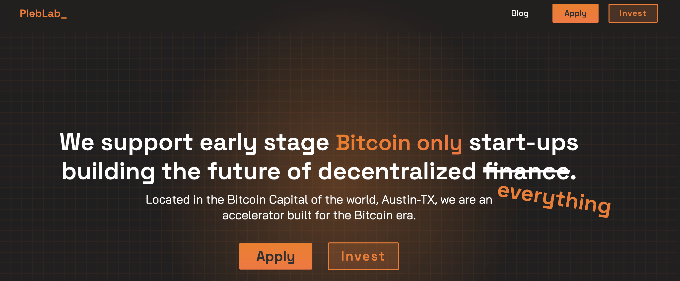 AUSTIN, TEXAS, USA, January 30, 2023 /EINPresswire.com/ — PlebLab_ is the world’s first Bitcoin / Lightning accelerator. Located in downtown Austin, Texas. Companies join the program on a rolling basis in exchange for 5% equity. The physical “ground zero” co-working and builder space has available private office rental, hot-desk and dedicated desk memberships. The space has several in-person events as well as weekend educational workshops, and more.