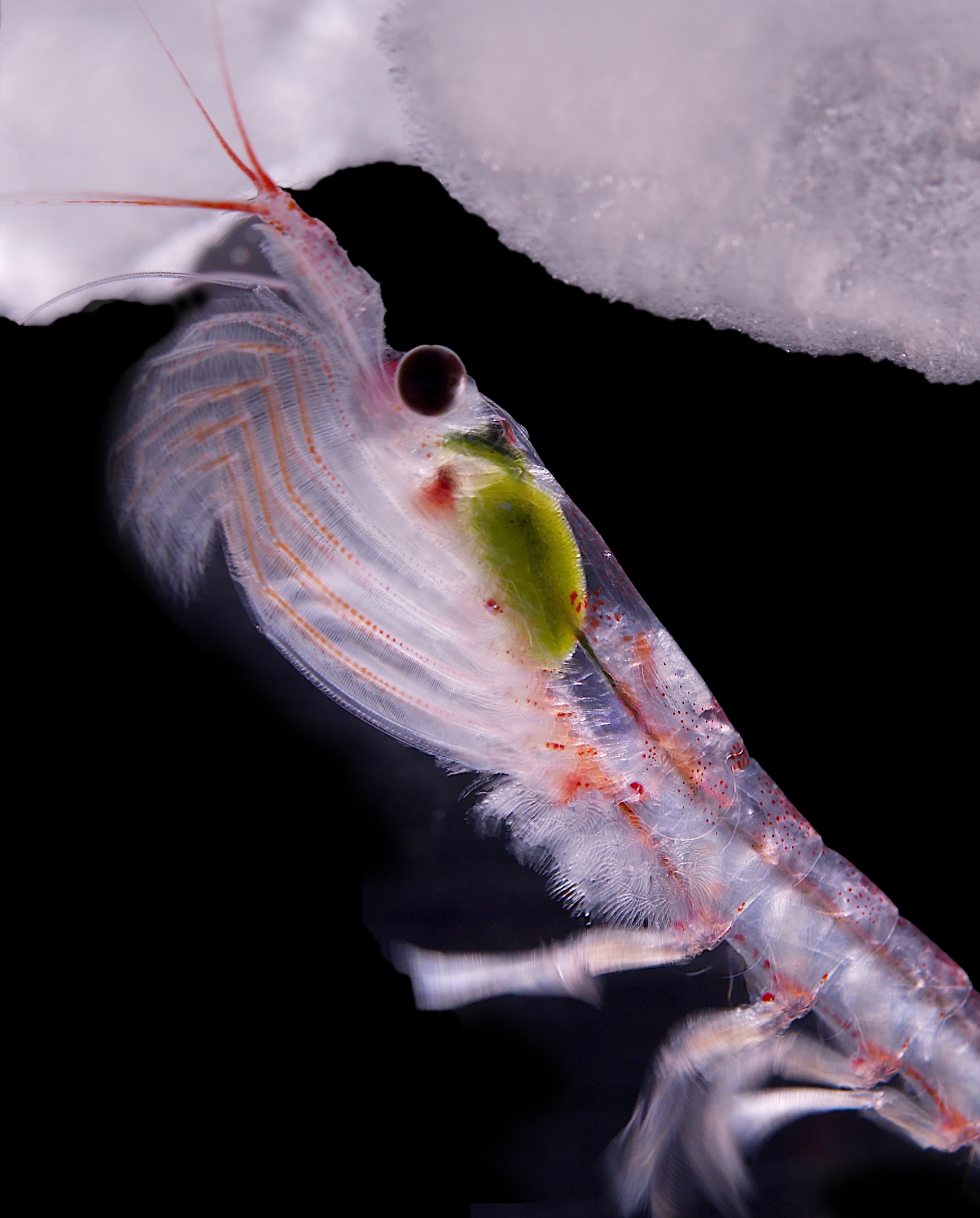 El krill antártico es un crustáceo similar a un camarón con una longitud corporal de 6 cm y un peso de hasta dos gramos, sin embargo, tiene la mayor biomasa de cualquier especie animal silvestre en la Tierra y es una parte indispensable del ecosistema del Océano Austral. Dependiendo del hielo marino antártico y del fitoplancton y algas, abundantes en nutrientes que conforman este hábitat, el krill antártico es considerado una de las especies multicelulares más ricas en recursos.