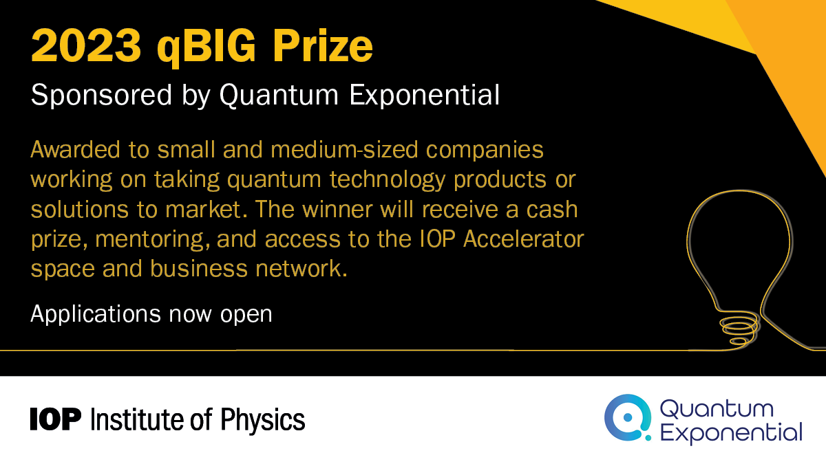 Embargoed 10th November 2022 London, United Kingdom – The Institute of Physics (IOP) today announced its continued push for growth in the quantum technologies sector by launching a Quantum Business Innovation and Growth Group (qBIG) award, in collaboration with Quantum Exponential plc, the UK’s first enterprise venture capital fund focused on quantum technology. The prestigious award is focused on supporting the innovation and commercialisation of quantum technologies.