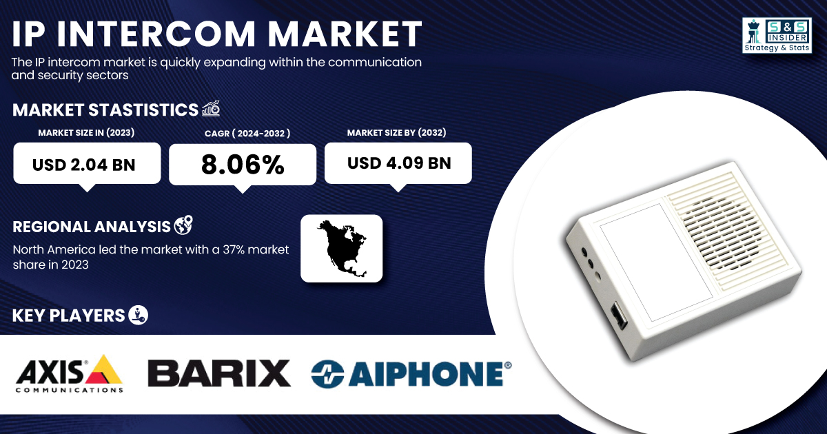 As Per the SNS Insider,“The IP Intercom Market size was valued at USD 2.04 Billion in 2023. It is estimated to reach USD 4.09 Billion by 2032, growing at a CAGR of 8.06% during 2024-2032.”