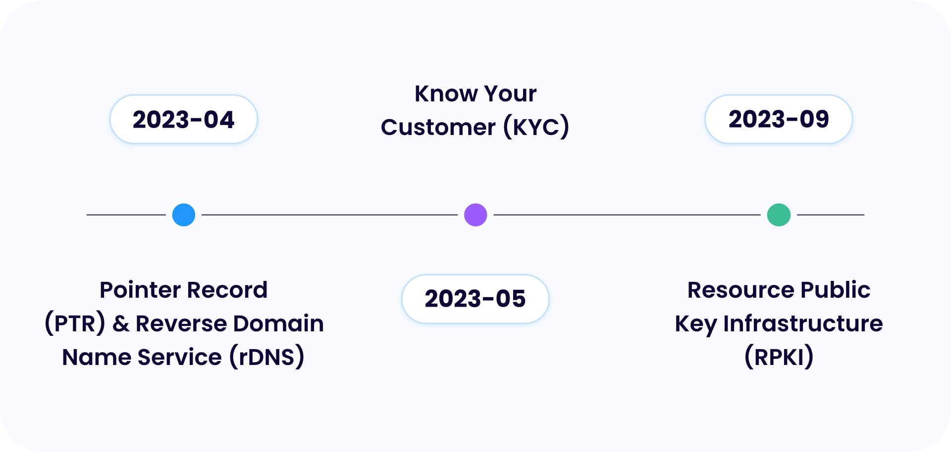 To address more technical forms of abuse, IPXO deployed specialized infrastructure and control mechanisms, specifically implementing Resource Public Key Infrastructure (RPKI) and BGP parking.