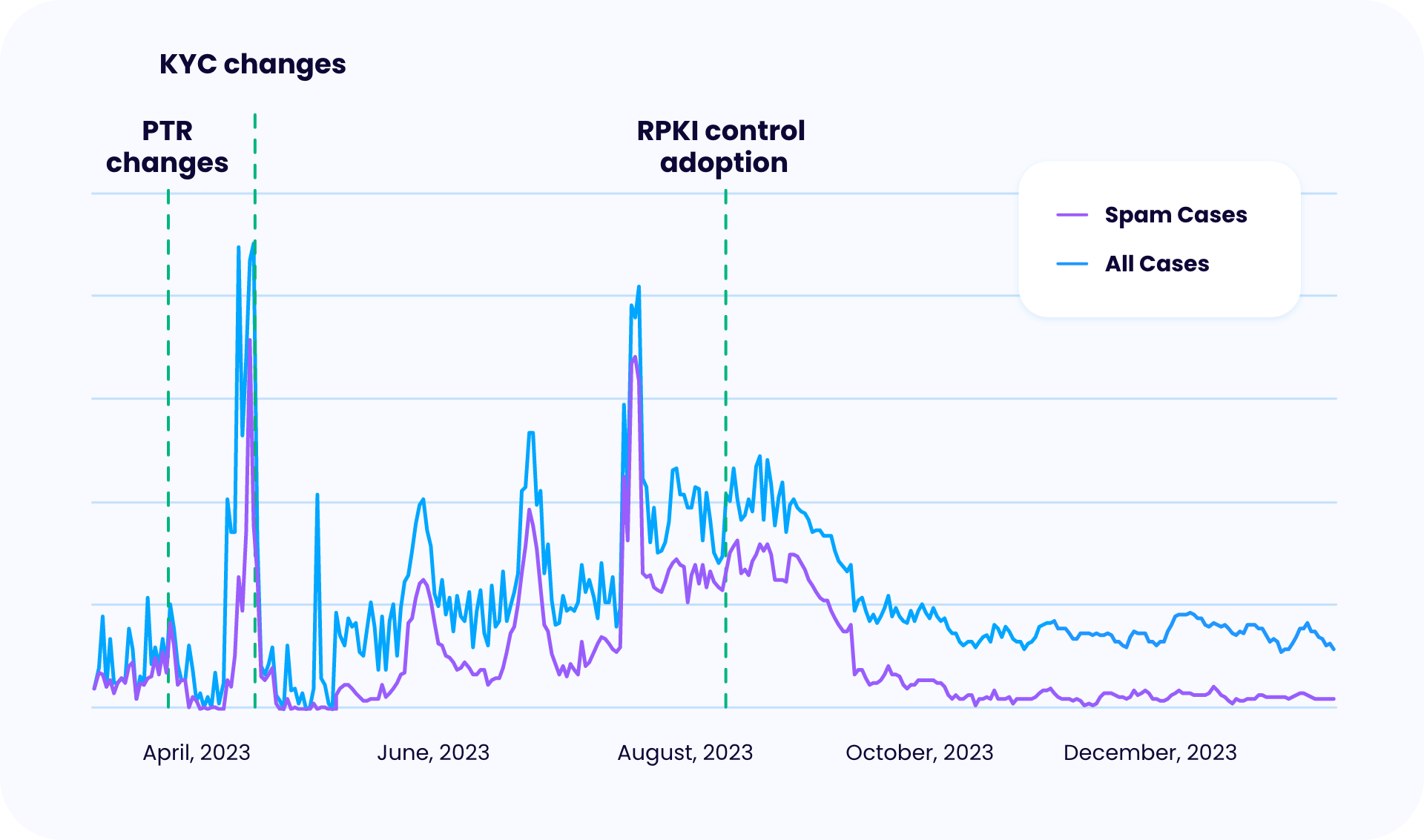 As IPXO’s marketplace grew, it experienced a surge in abuse reports, primarily related to SPAM originating from leased IP addresses. This trend threatened the integrity of the platform and the reputation of its clients – a scenario familiar to many online businesses.