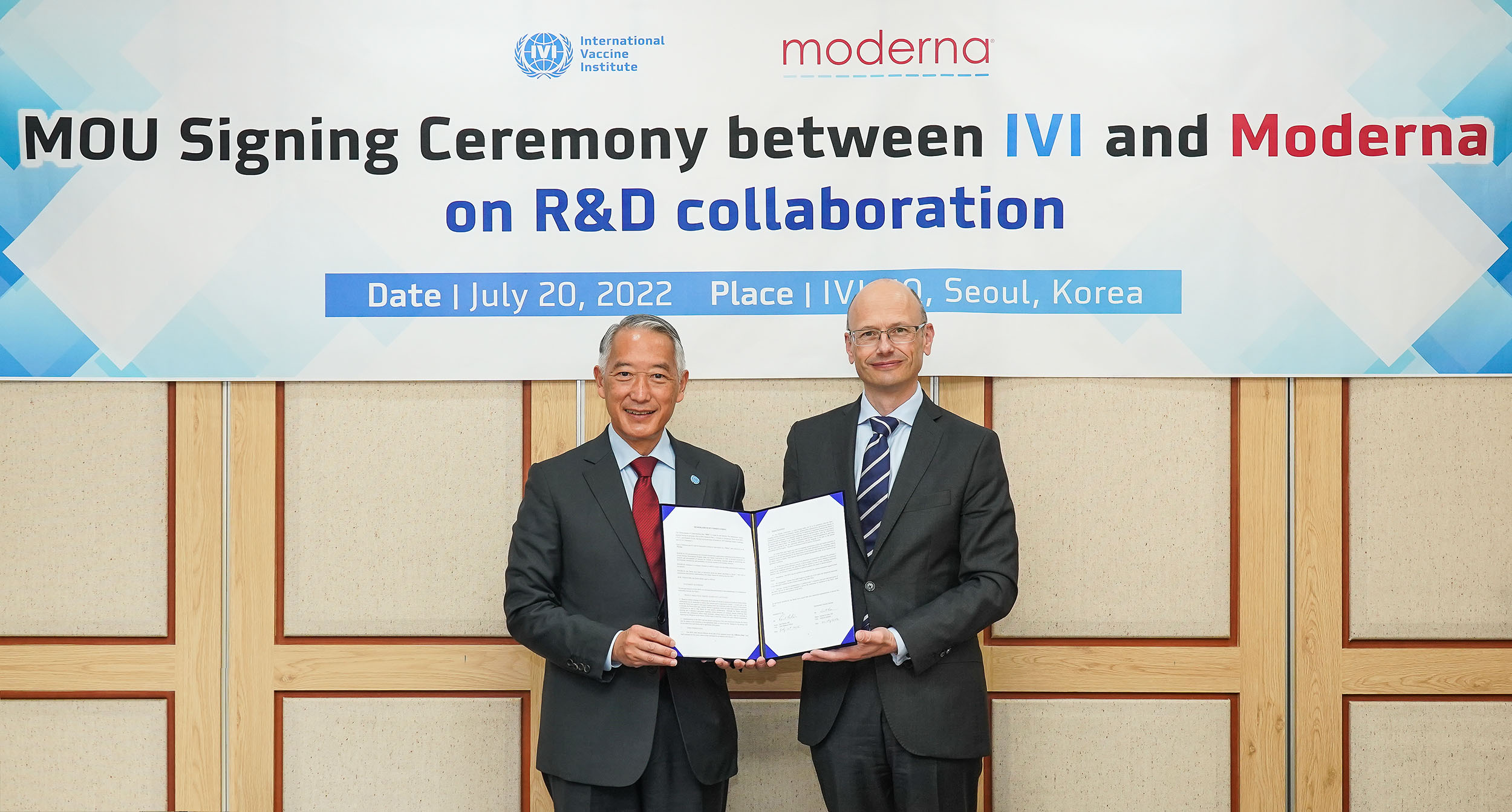 SEOUL, REPUBLIC OF KOREA, July 20, 2022 /EINPresswire.com/ — The International Vaccine Institute (IVI), an international organization with a mission to discover, develop, and deliver safe, effective, and affordable vaccines for global health, and Moderna, a biotechnology company pioneering messenger RNA (mRNA) therapeutics and vaccines, signed a Memorandum of Understanding (MOU) today to establish a partnership for collaborative vaccine research and development.