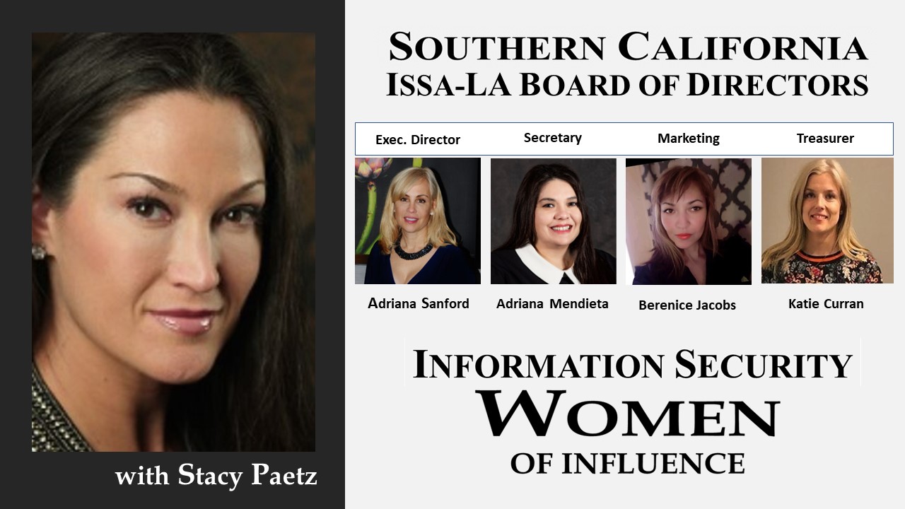 Whether you’re just starting out in your career or looking to take the next step, the ISSA-LA Women in Security Forum is a valuable resource. Attending the SOUTHERN CALIFORNIA INFOSEC WOMEN of INFLUENCE Session with award-winning international TV personality Stacy Paetz provides an excellent opportunity to expand your network with other professionals in the information security field.