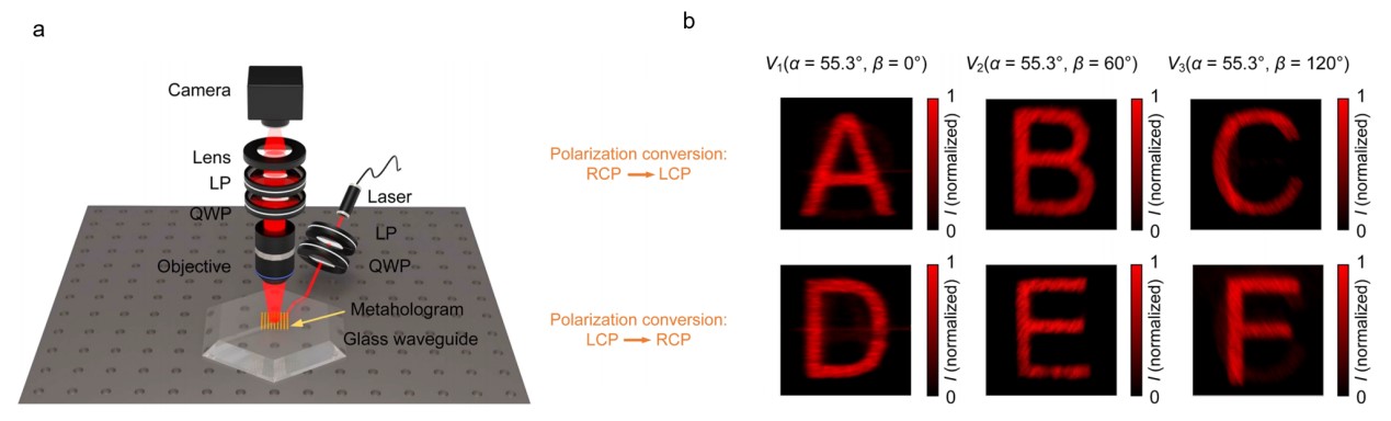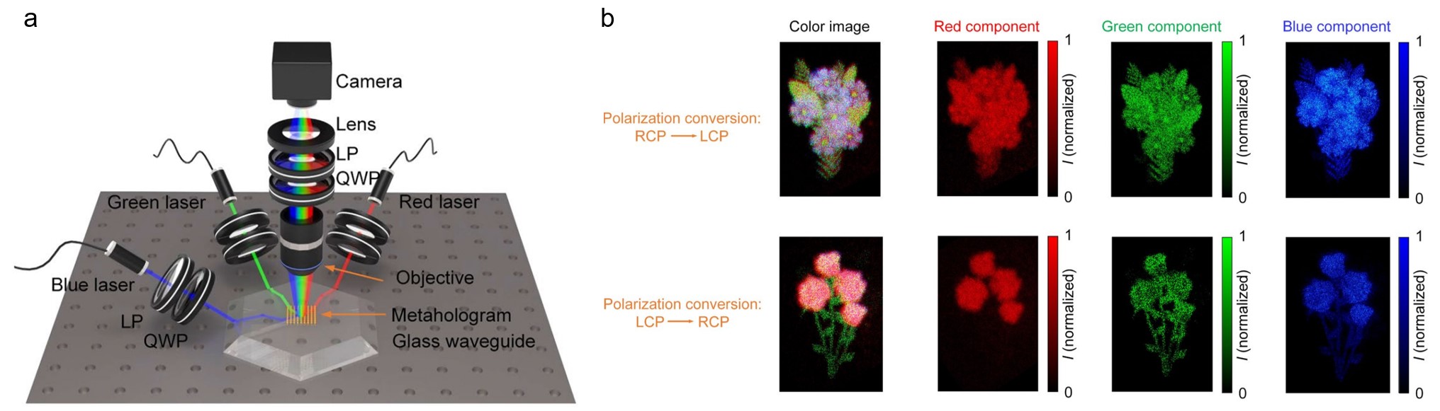USA, June 7, 2024 /EINPresswire.com/ — Researchers have developed a new type of planar-glass-waveguide-based metasurface holograms that feature multiple crosstalk-free display channels by precisely manipulating guided incident light. Depending on both the spin and azimuthal angle of guided incident light, the metaholograms can project six distinct single-color images or even two full-color images by leveraging a novel k-space translation strategy. This groundbreaking study opens new possibilities for compact virtual/ augmented reality (AR/VR) displays, information storage, image encryption, and beyond.