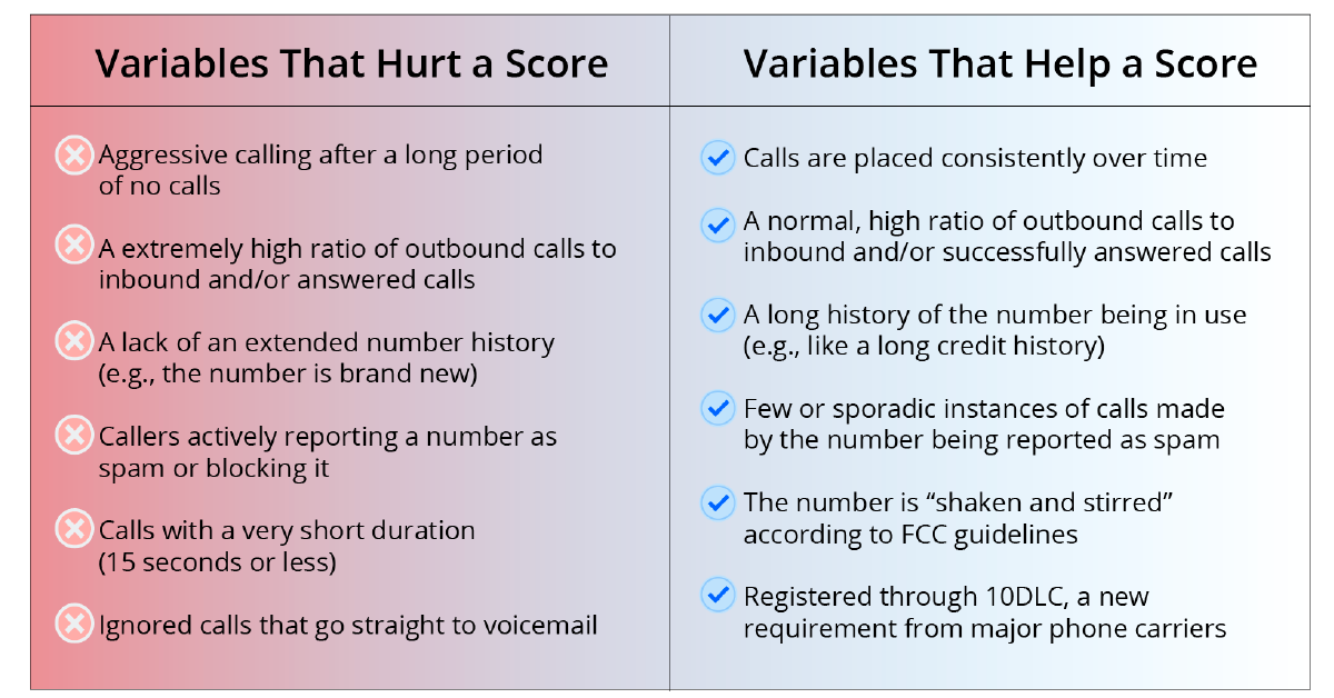 ConnectionBoost relies on AI to calculate a score for phone numbers used by sales teams that reflects the likelihood of the number showing up on caller ID as spam or scam. It’s like a credit score for phone numbers, indicating the risk of a number showing up as spam the same way a credit score indicates the risk of an individual not paying back a loan. All major cell carriers in the US have their own scores for each phone number, influenced by factors such as number history, ratio of outbound to inbound calls, and length of connected calls. ConnectionBoost taps into this by using available data from major cellphone carriers and running its own number tests to estimate a “Spam Likely” score for all phone numbers in the Kixie database.