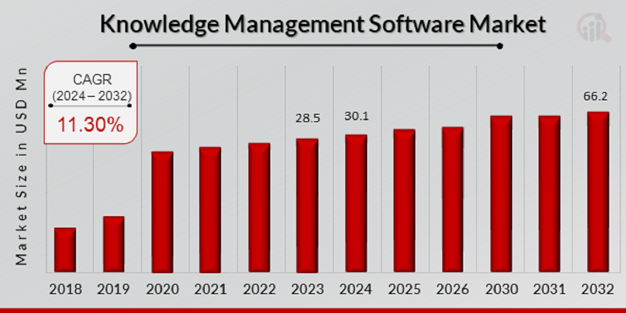 NEW YORK, NY, UNITED STATES, January 31, 2025 /EINPresswire.com/ — According to a new report published by Market Research Future, The Knowledge Management Software Market was valued at USD 30.1 Billion in 2024, and is estimated to reach USD 66.2 Billion by 2032, growing at a CAGR of 11.30% from 2024 to 2032.