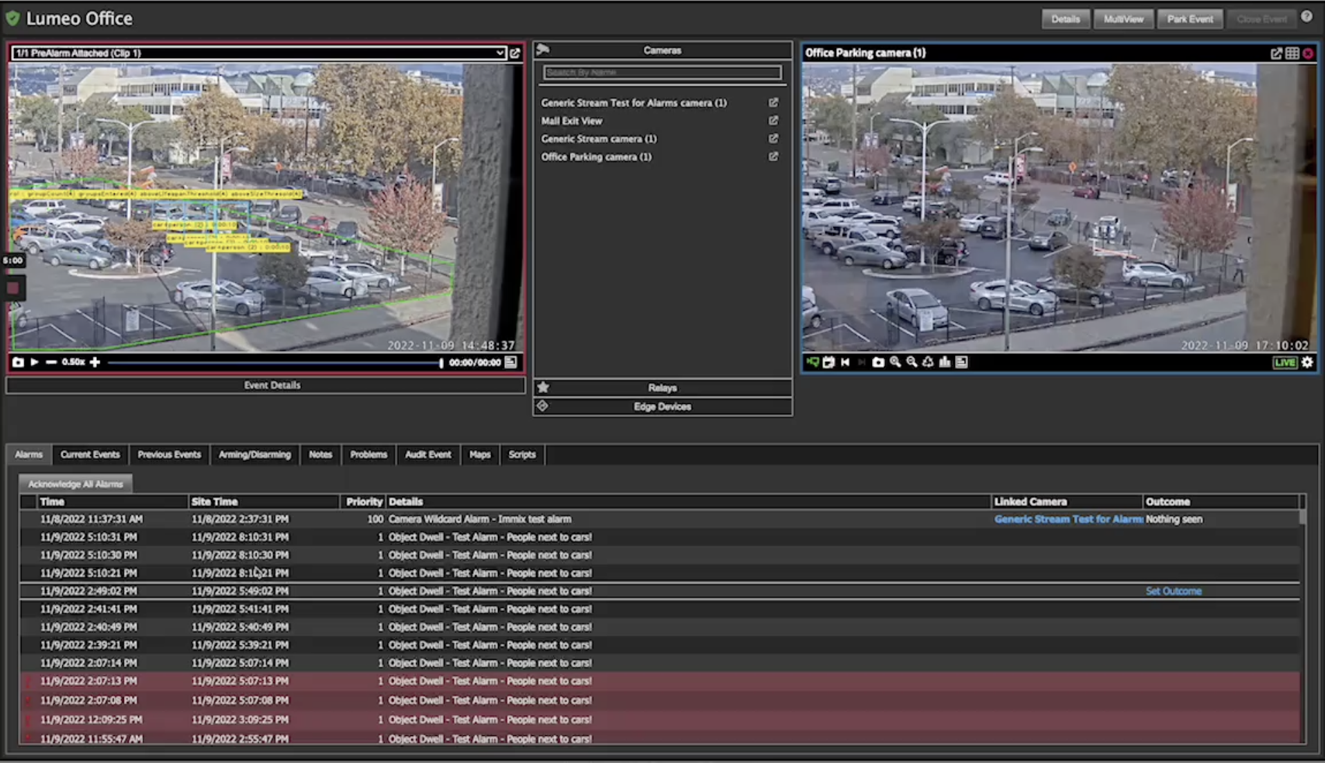 OAKLAND, CA, USA, November 15, 2022 /EINPresswire.com/ — Lumeo, a designer of computer vision solutions, announces a partnership with Immix, a leading developer of software that manages and responds to security events with an intuitive, easy-to-use security integration platform. The latest release of the Lumeo Platform can send any event or analytic rule trigger to the Immix Central Station platform, leveraging the power of video data to improve security and business processes.