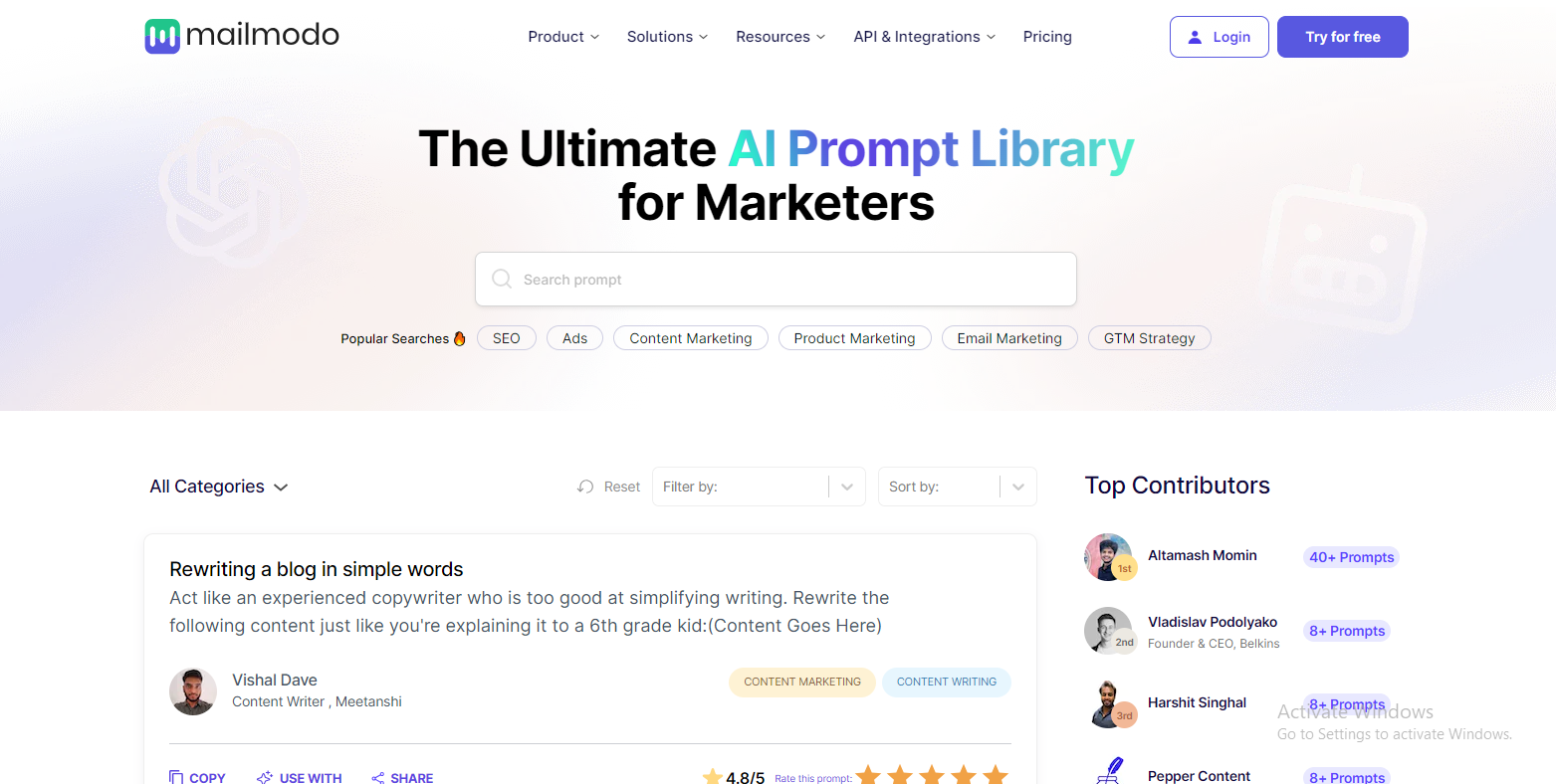 SAN FRANCISCO, CALIFORNIA, UNITED STATES, June 21, 2023/EINPresswire.com/ — Imagine a platform where marketers could discover, submit, and rate AI prompts for marketing use cases. Prompt Hunt by Mailmodo has achieved this feat with its library of 250+ ChatGPT prompts submitted by 50+ marketers actively using ChatGPT.