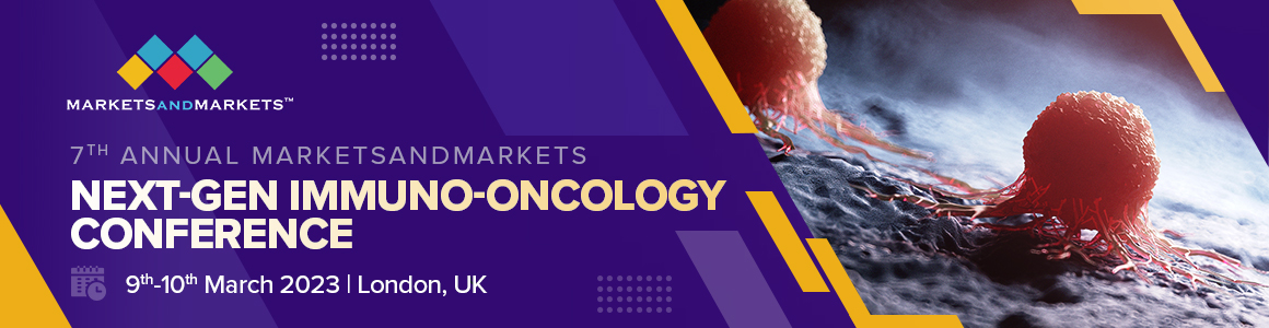 LONDON, UNITED KINGDOM, February 22, 2023 /EINPresswire.com/ — The 7th Annual MarketsandMarkets Next-Gen Immuno-Oncology Conference ’23 has been announced by MarketsandMarkets Conference in partnership with all the renowned Sponsors – SENGENICS, PROTEOME SCIENCES, EpigenDx, BD Biosciences, Lunaphore Technologies, Malvern Panalytical, Sanyou Bio, CELLECTA, TransCure BioServices, Veracyte, Cureline, BIOGNOSYS, Canopy Biosciences(r), PeproTech, Novogene, BioIVT, Biocytogen, ABZENA, Talem.