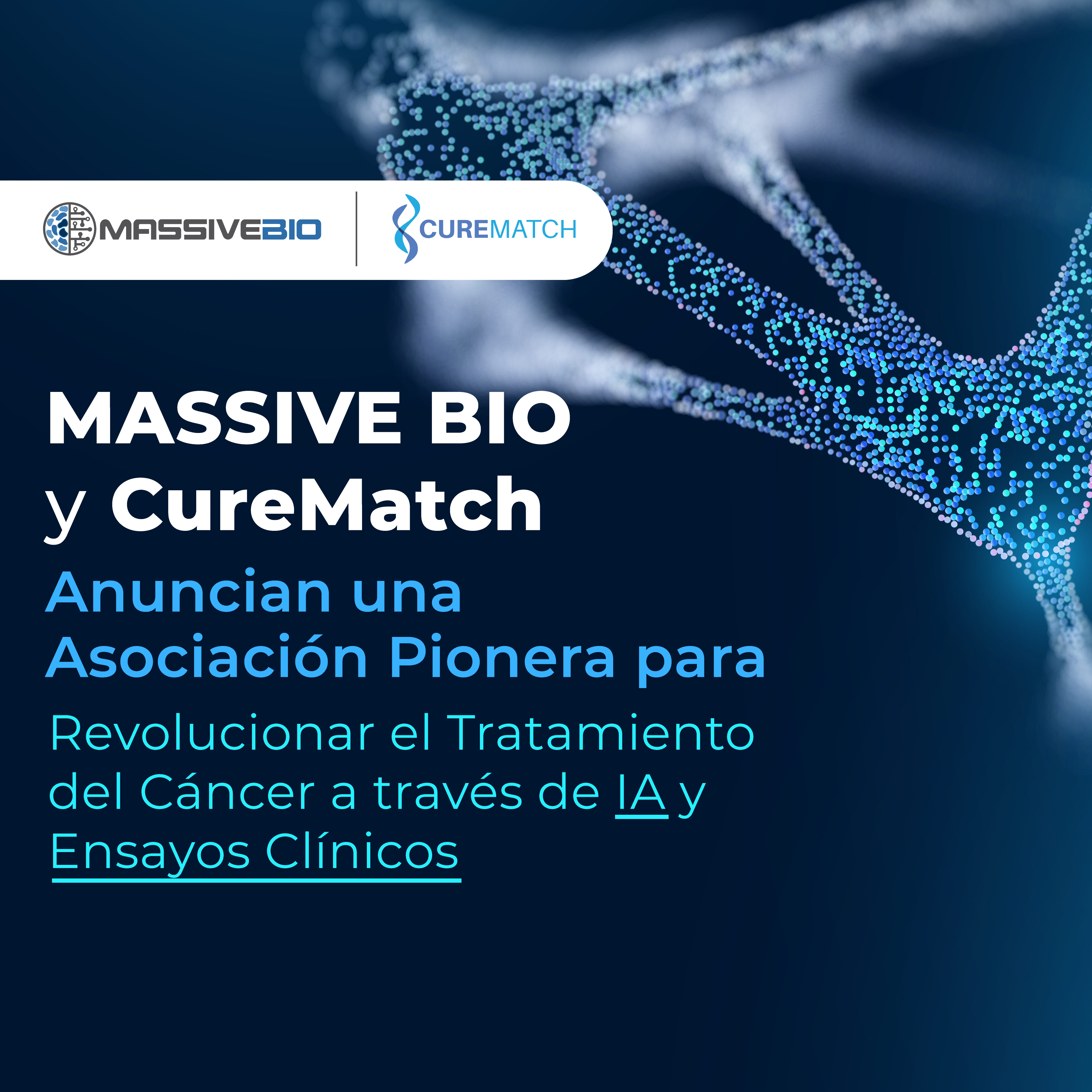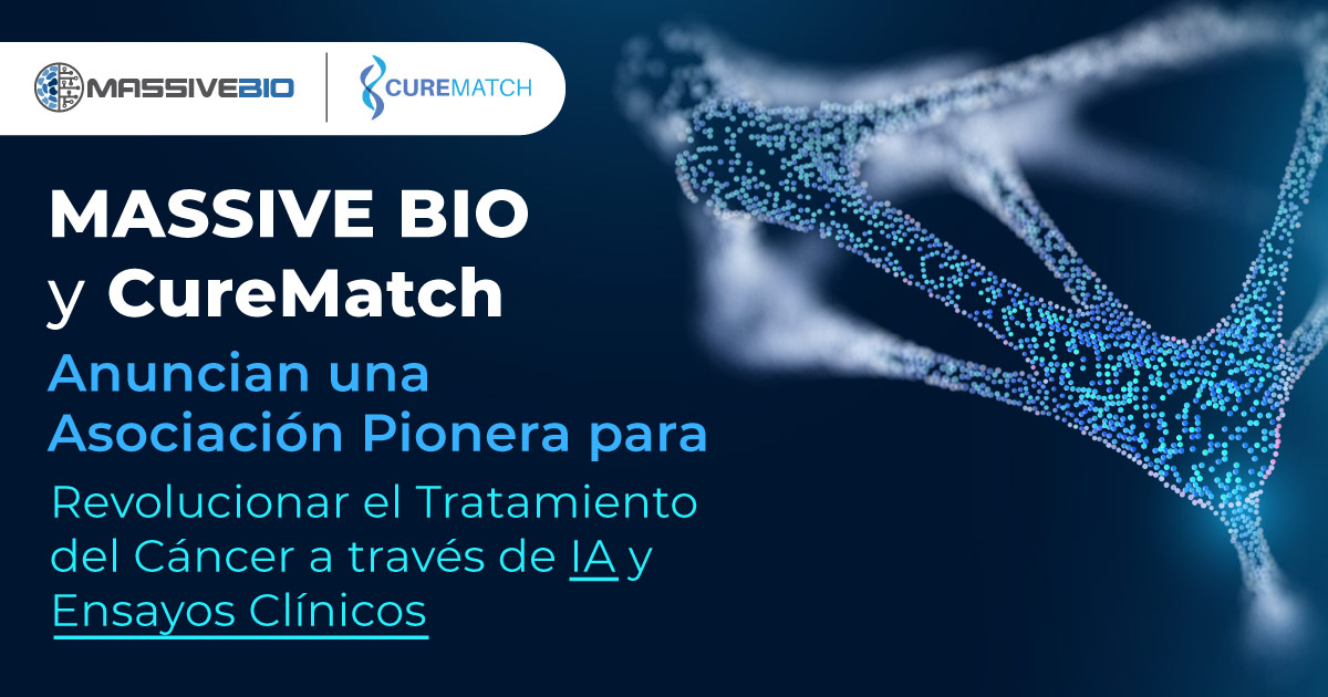 UNITED STATES, October 6, 2023 /EINPresswire.com/ — Massive Bio, una plataforma impulsada por IA que conecta a pacientes con ensayos clínicos y CureMatch, una empresa de tecnología sanitaria que aprovecha la IA de Knowledge Representation & Reasoning (KRR) para respaldar la medicina de precisión en oncología, han anunciado una innovadora colaboración destinada a revolucionar el tratamiento del cáncer a través de genómica avanzada, inteligencia artificial y accesibilidad amplia a ensayos clínicos