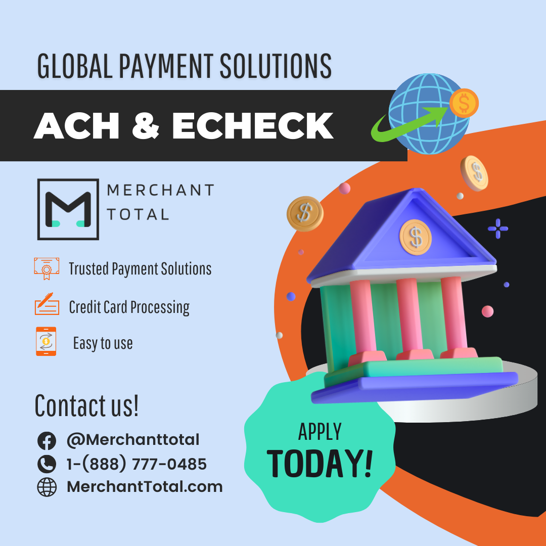 LAWRENCEVILLE, GA, UNITED STATES, October 5, 2023 /EINPresswire.com/ — Merchant Total, a leading name in global payment solutions, is excited to announce the expansion of its services to include ACH, credit card processing, and eChecking, tailored specifically for businesses in high-risk sectors. This strategic move is in response to the increasing demand for diverse, reliable, and secure payment processing options tailored for high-risk industries.