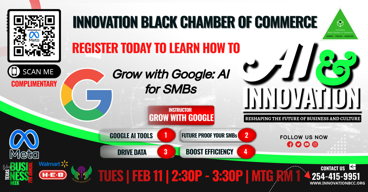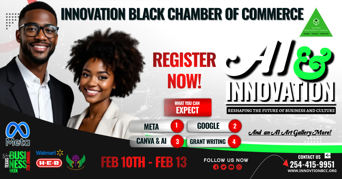 KILLEEN, TX, UNITED STATES, January 3, 2025 /EINPresswire.com/ — The Innovation Black Chamber of Commerce (IBCC) will host its 7th Annual Business Week from February 10-13, 2025, at the Killeen Civic and Conference Center. This year’s event, themed “Reshaping the Future with AI & Innovation,” will focus on the transformative potential of artificial intelligence across industries, with a particular emphasis on empowering Black-owned businesses.
