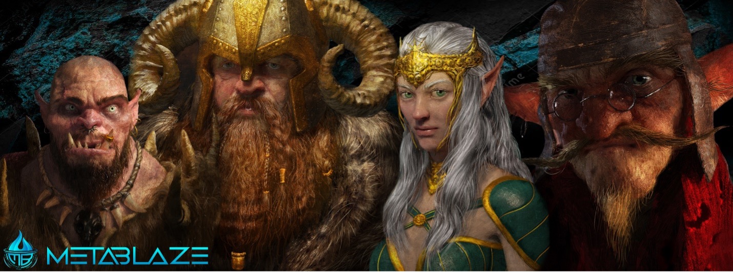 The various in-game character species are based on 10k NFT collections produced by MetaBlaze.