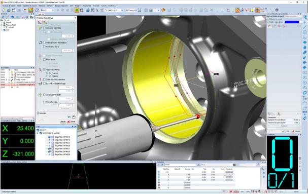 • Based on its fully customizable virtual world environment and the CAD files of the parts to be measured, the initial set-up and completion of a part program can be done without having any real CMM downtime: the program can be sent to the machine virtually error and collision free.
