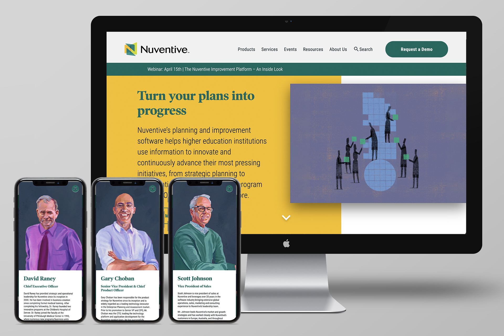 Nuventive hired Michael Patrick Partners due to the studio’s demonstrated expertise creating higher-education marketing campaigns for some of the nation’s most acclaimed colleges and universities, and its track record counseling business-to-business software clientele.