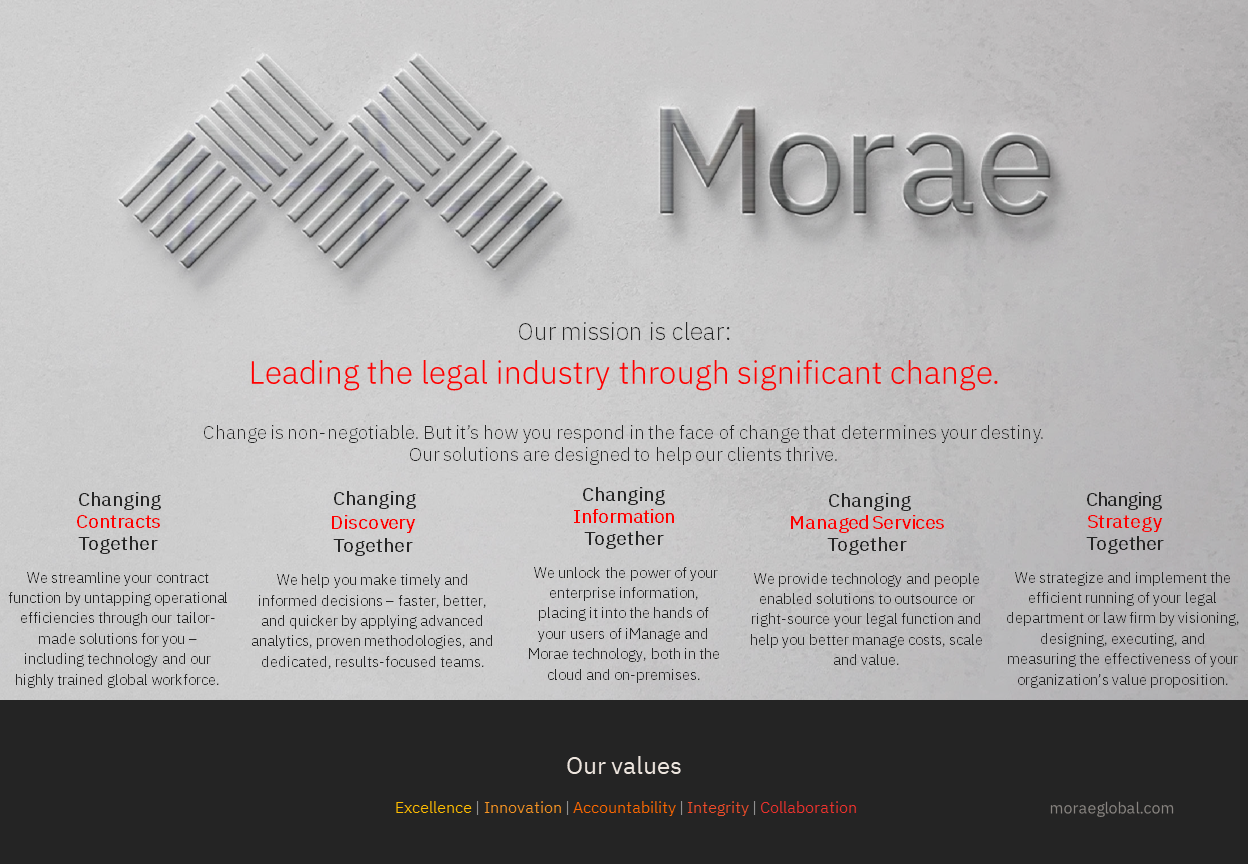 Founded in September 2015, Morae’s evolution as an innovative, technology-enabled legal solutions company – now with a clear new brand – has been marked by impressive growth and market expansion, both organically and acquisitively. Morae’s ensuing success includes an enviable and growing client roster of leading law firms and legal departments.