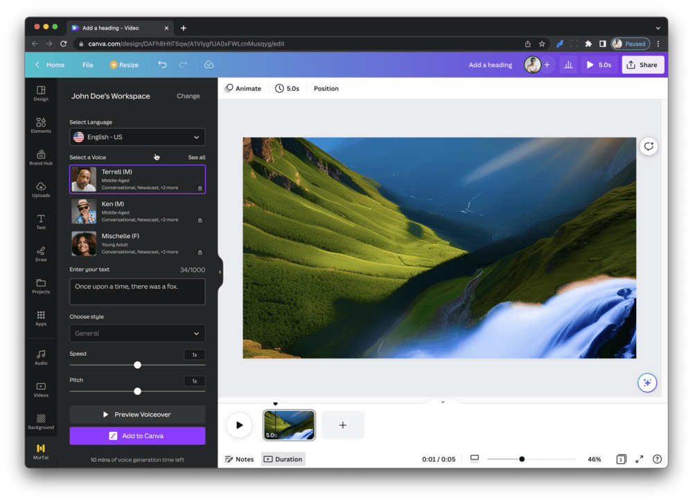 Canva users can now easily generate AI-powered text to speech voiceovers for their designs.