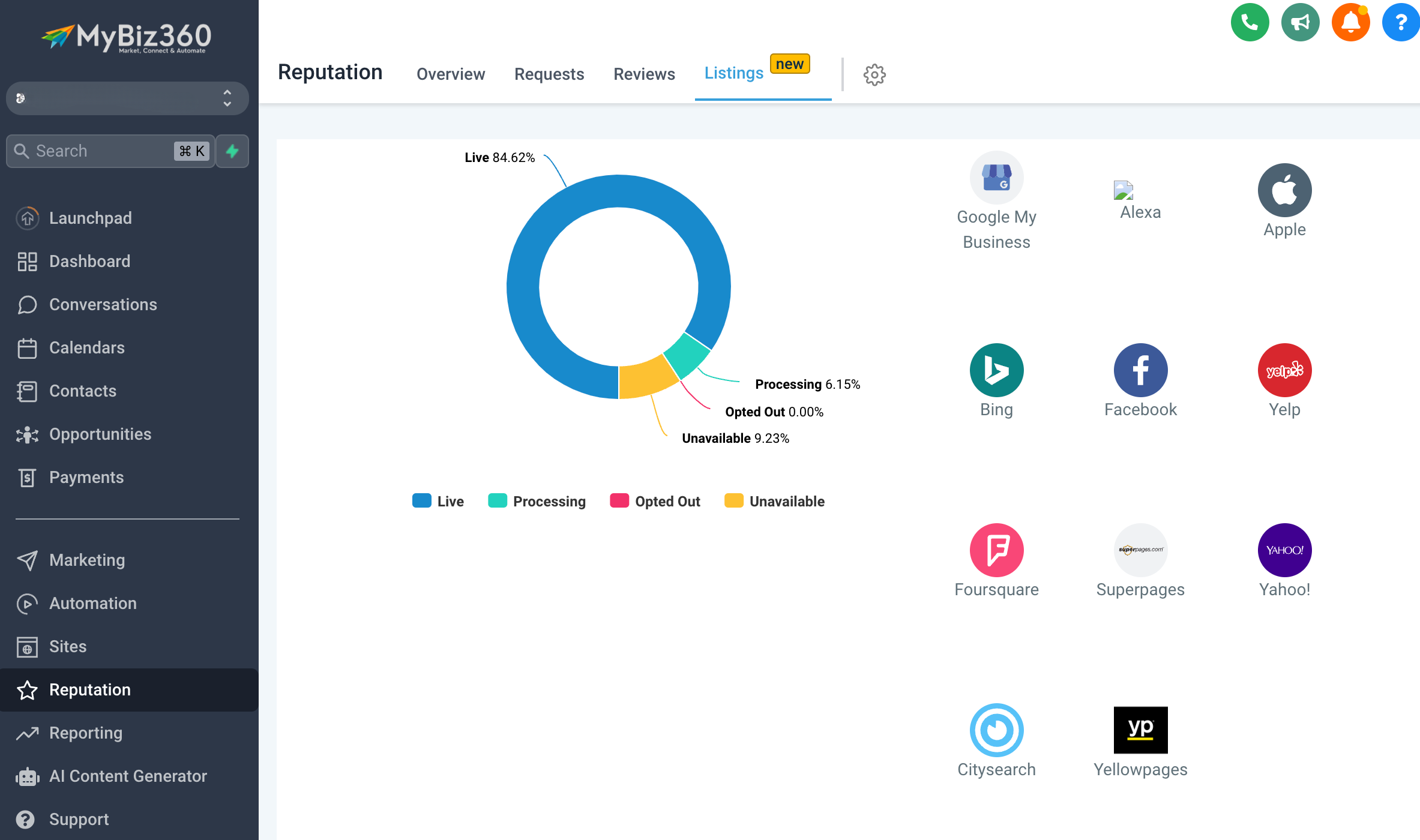 Another one of the key features of MyBiz360 is its reputation management capabilities, ensuring businesses maintain a positive online presence. Furthermore, the platform offers a GPT based AI Content Creator, which saves hours of time each day by generating various forms of content, such as Google and Facebook Ads copywriting, website and funnel copywriting, email scripts, video scripts, review responses, and more.