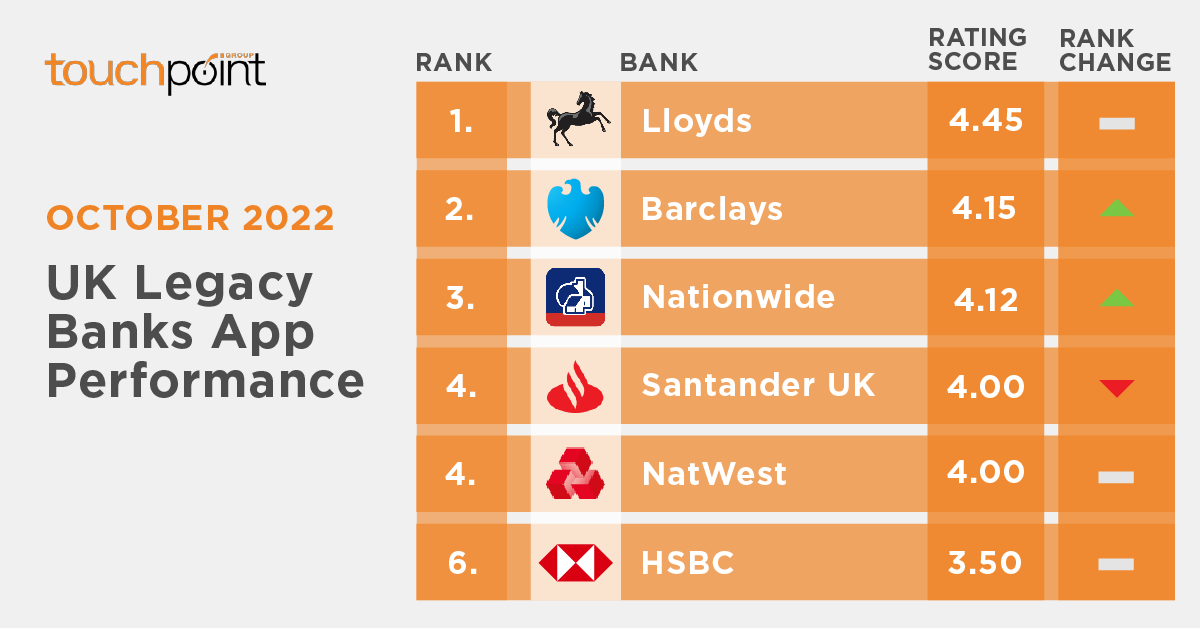 “The Barclays banking app, with an Engaged Customer Score of 4.15 in October, is ranked second in the UK market and generally well received, but there is still room for improvement,” says Touchpoint Group’s Head of Customer Intelligence Tony Patrick. While the foundational features and functionality perform well, we can see issues creeping in with contactless payment, in-app chat, and a lack of support in the data being analysed.