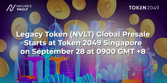 SINGAPORE, SINGAPORE, SINGAPORE, September 16, 2022 /EINPresswire.com/ — Launched earlier this year and following the 2x over-subscription and recent closing of their Private Sale round, green-tech start-up, Nature’s Vault, announces the official opening of their Presale round for the Legacy Token (NVLT) on 28 September 2022 at 0900 GMT+08. The launch date coincides with the formal opening of TOKEN 2049 in Singapore.