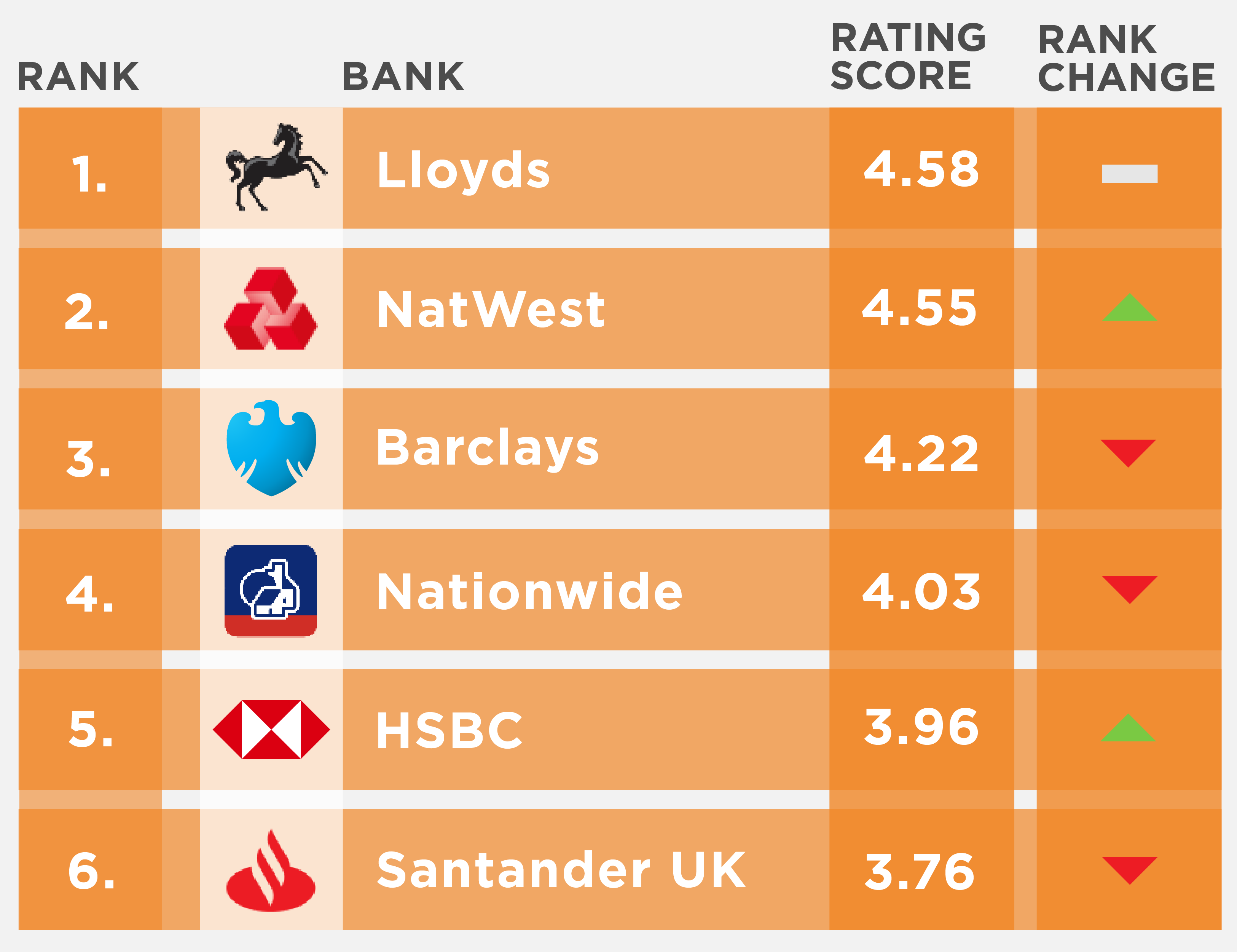 If NatWest can resolve those issues, it will be possible for them to take the number 1 ranking spot from Lloyds, which has dominated rankings for over a year.