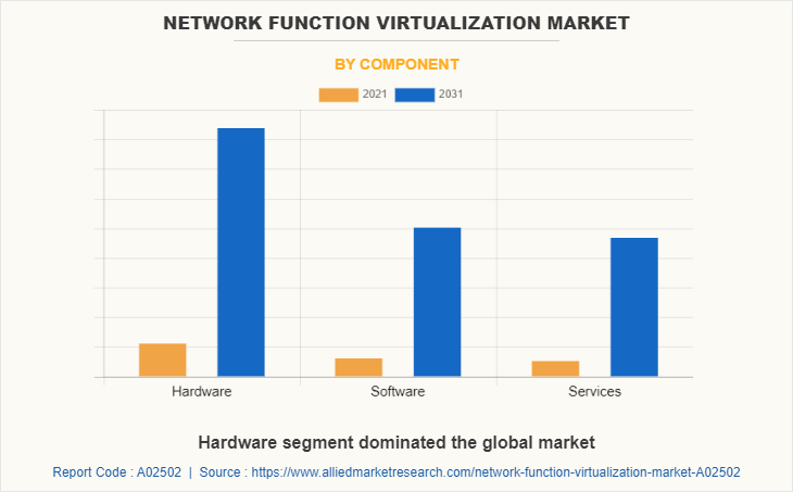 Depending on end user, the enterprises segment dominated the growth in 2021 and is expected to continue this trend during the Network Function Virtualization Market Forecast period. Increased focus of enterprises on re-architecting their networking infrastructure to achieve automation, network security, and application performance is one of the major factors leading to significant adoption of network function virtualization technologies among enterprises. In addition, surge in adoption of advanced technologies in these enterprises such as cloud computing services, bring your own device (BYOD), Internet of Things (IoT), and Big Data are some of the factors driving the growth of the network function virtualization market.